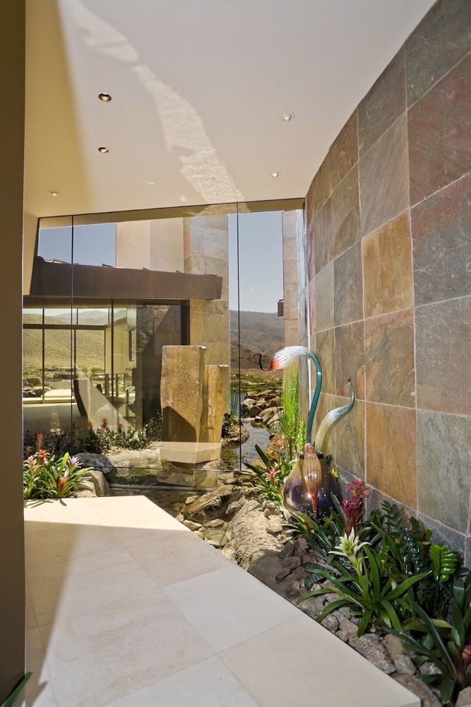 Guiding this vision was the acclaimed architect, Guy Dreier, whose creative prowess transformed mere blueprints into a symphony of lines, shapes, and spaces. His vision was complemented by the skillful craftsmanship of builder Ron Noye, whose hands brought forth the tangible manifestation of architectural brilliance. Together, with Len at their side, they embarked on a journey to weave together elements of water, stone, and glass, blending them seamlessly into the desert landscape.