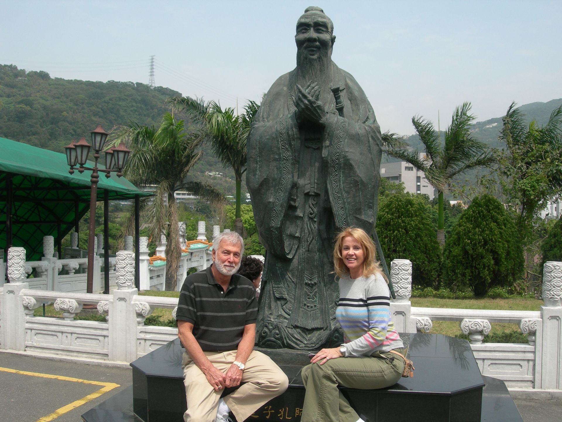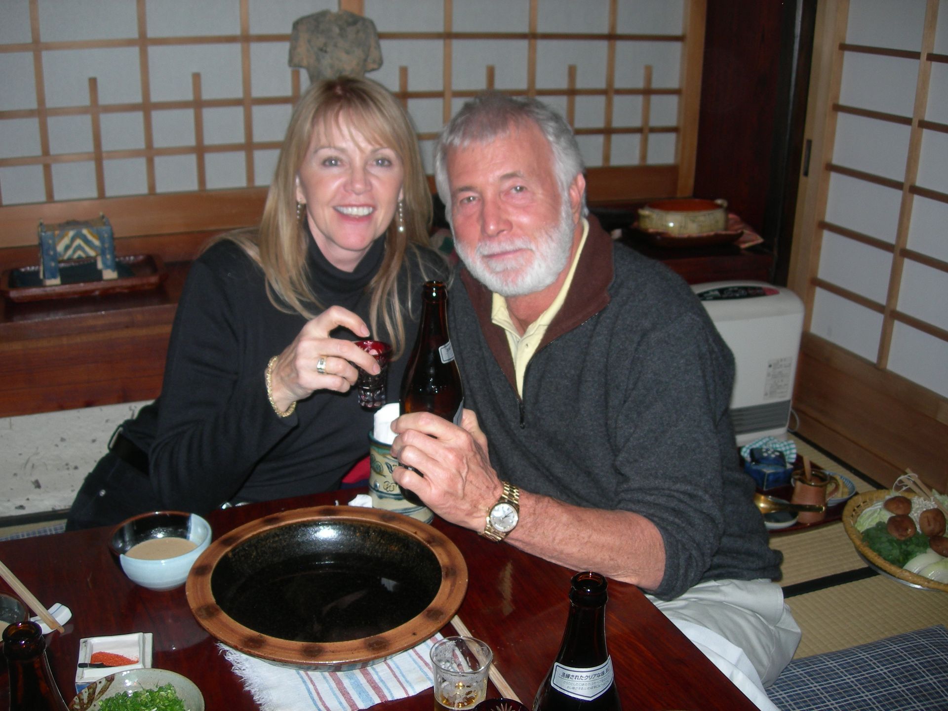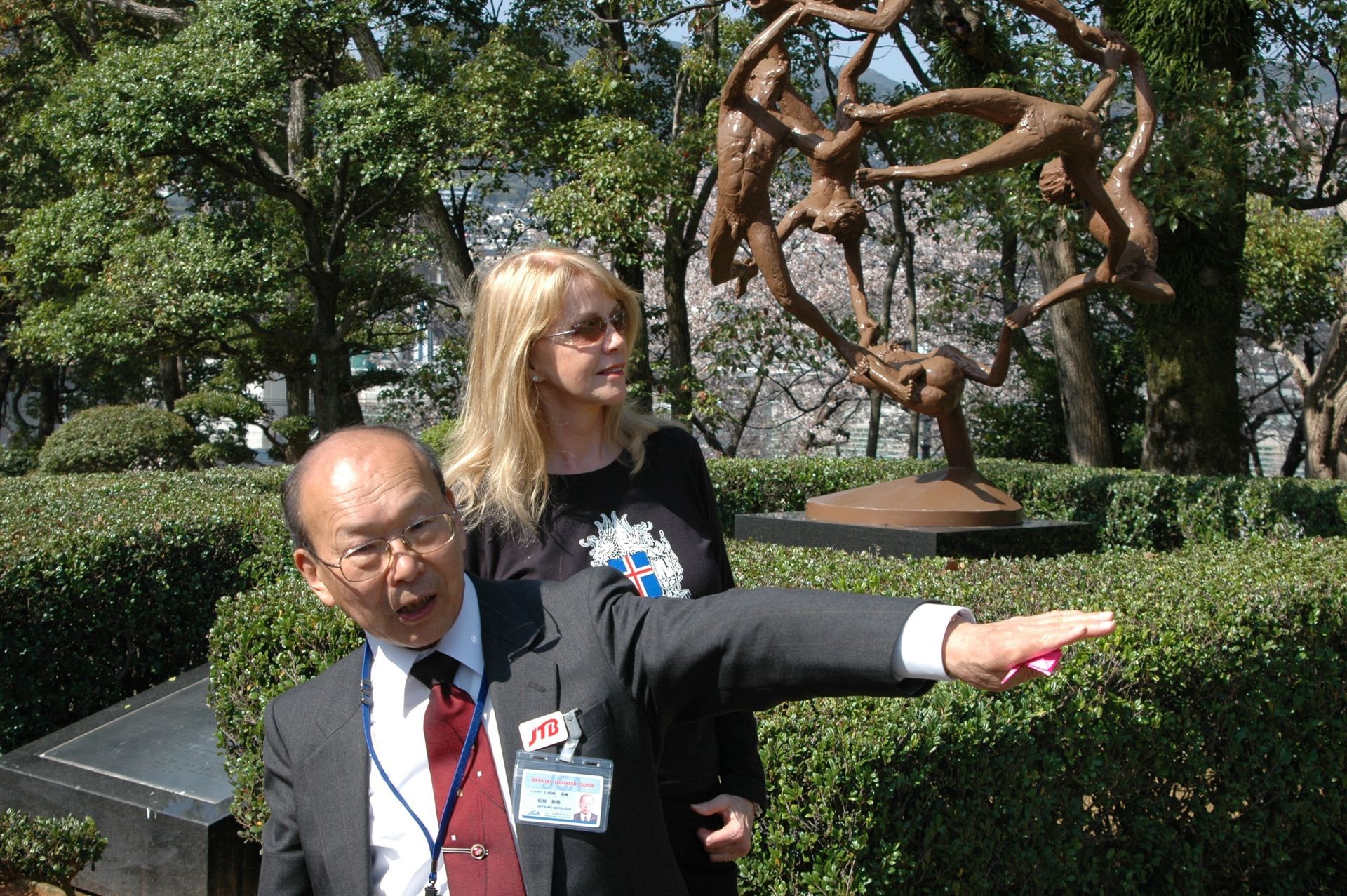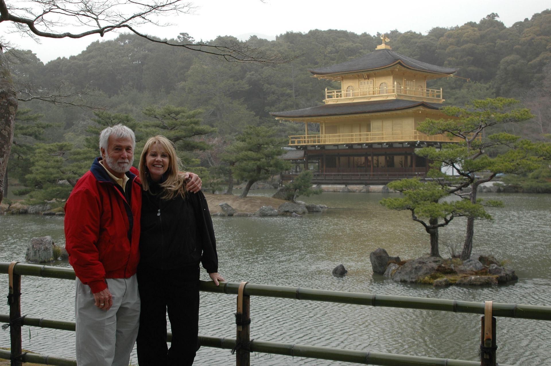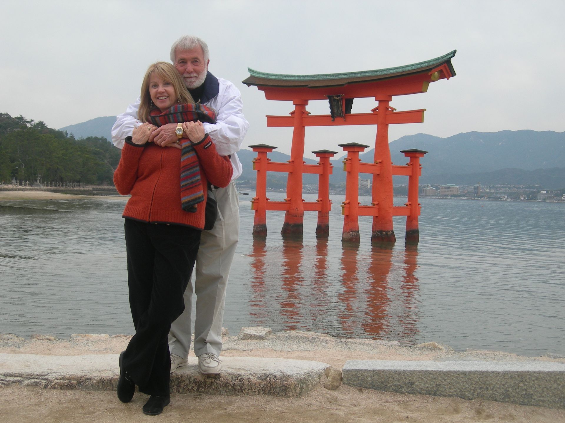 he ship’s voyage to Japan was planned to coincide with the blossoming of the Cherry Trees, and blossom they did - in profusion! We counter-balanced our tours of Nagasaki and Hiroshima’s sobering Atomic Bomb sites with visits to beautiful Kobe, where we feasted on the famous beef, and joined thousands of locals making their pilgrimage to the beautiful and mystical Kiyomizu Temple (Temple of Pure Water). It was delightful to participate at a few of the many good-luck shrines and wishing stations that filled the complex. On our visit to Intsukushima Shrine on Miyajima, worshipped as a divine island since ancient times, we posed for what was later to become a favorite photo; the two of us in front of one of Japan’s most famous Tora gates. We learned that the bright red color is used to keep demons from passing through! While touring many of Japan’s beautiful and tranquil Shukkenlen “mineature scenery” gardens we were treated to the sight of newly married couples dressed in traditional clothing, posing for wedding photos amongst the cherry blossoms. It was absolutely charming.