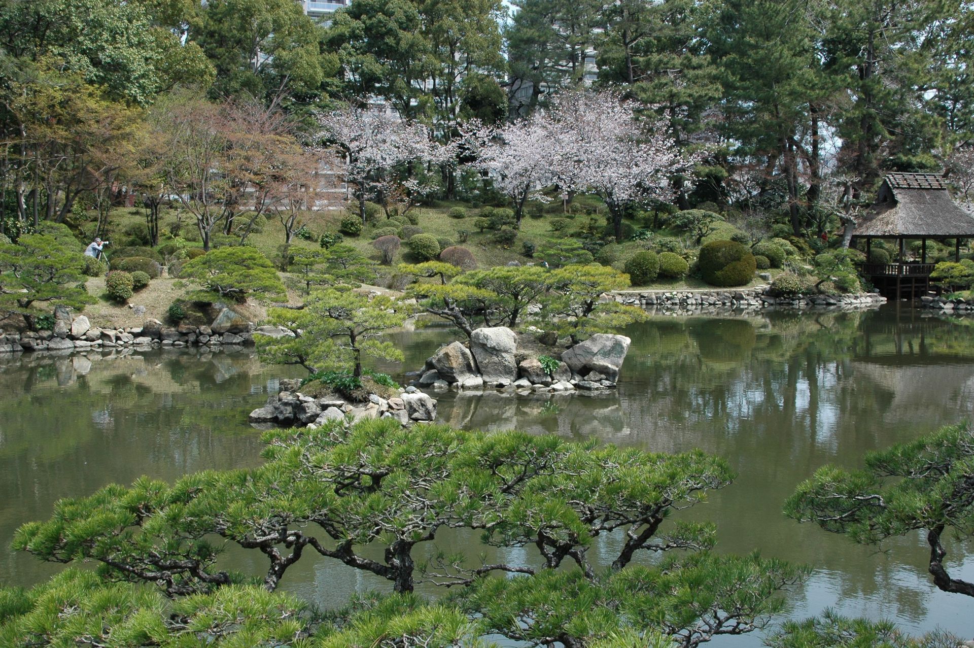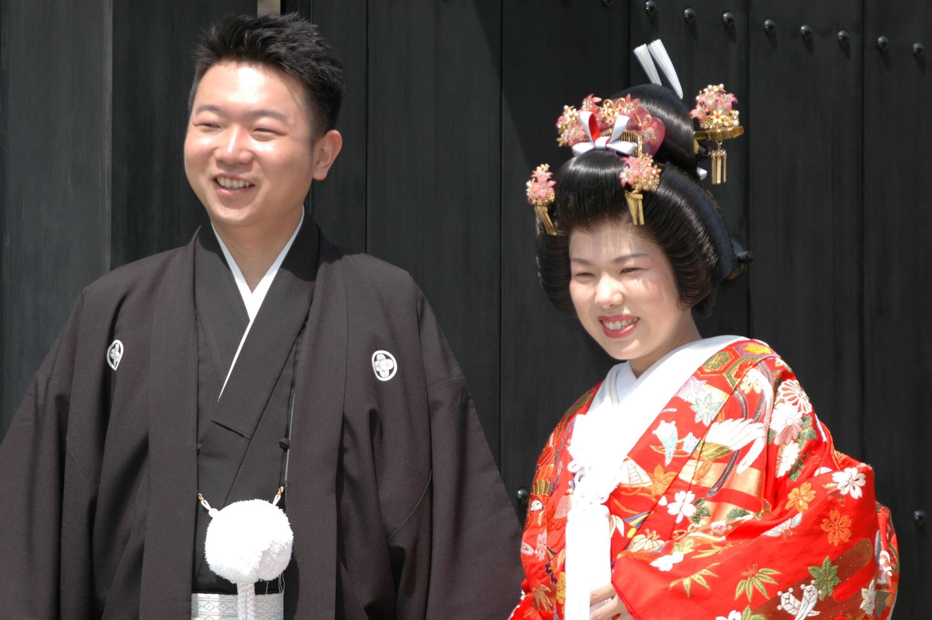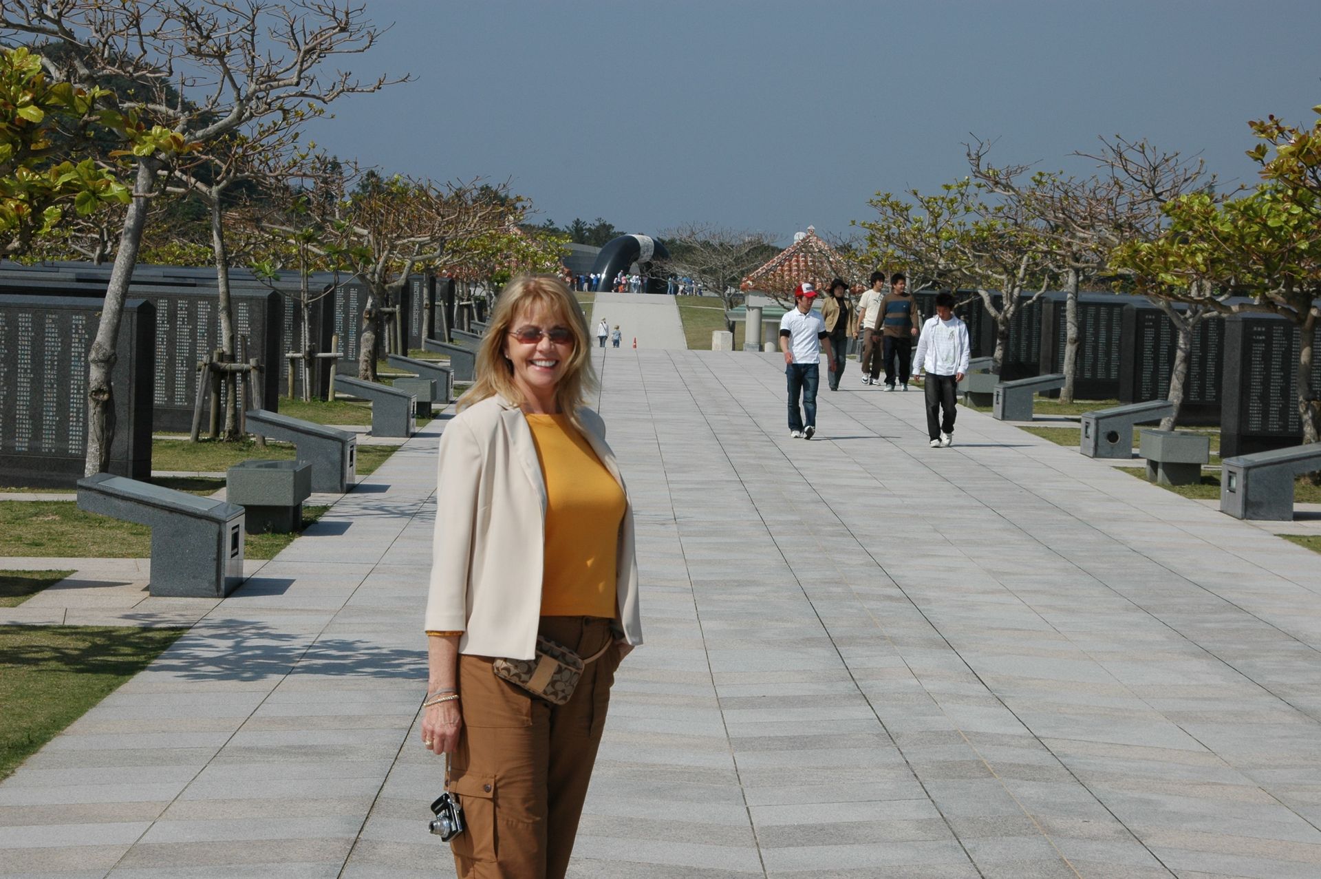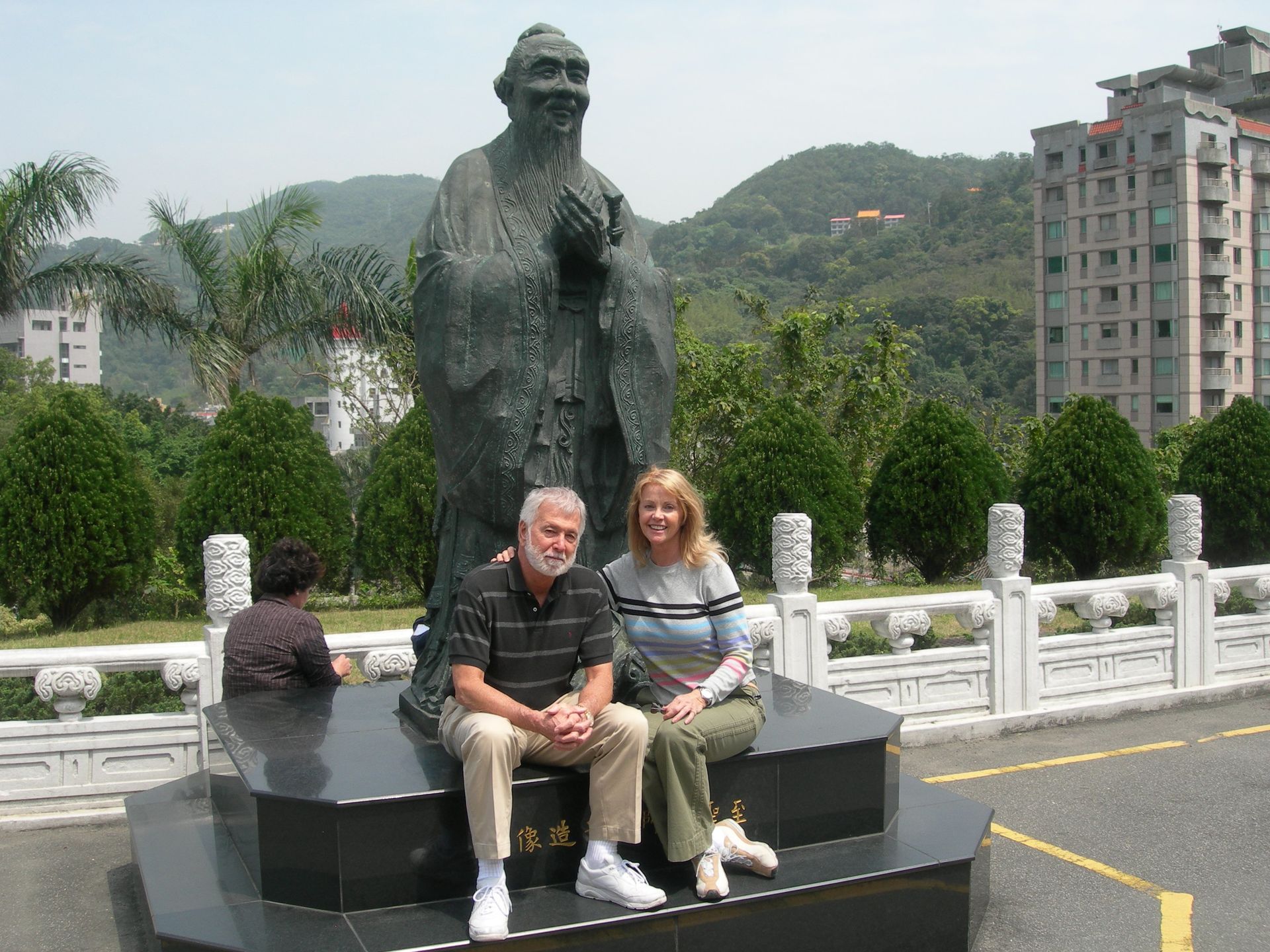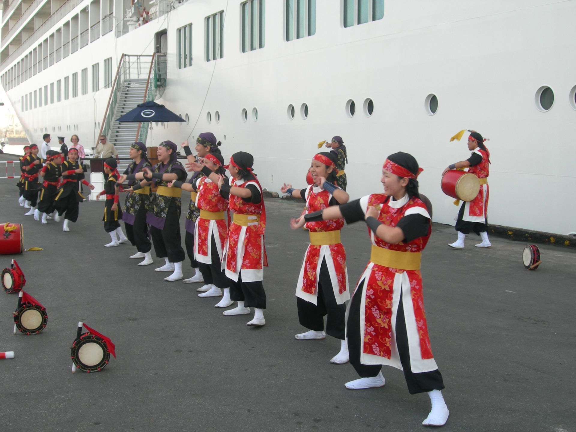 he ship’s voyage to Japan was planned to coincide with the blossoming of the Cherry Trees, and blossom they did - in profusion! We counter-balanced our tours of Nagasaki and Hiroshima’s sobering Atomic Bomb sites with visits to beautiful Kobe, where we feasted on the famous beef, and joined thousands of locals making their pilgrimage to the beautiful and mystical Kiyomizu Temple (Temple of Pure Water). It was delightful to participate at a few of the many good-luck shrines and wishing stations that filled the complex. On our visit to Intsukushima Shrine on Miyajima, worshipped as a divine island since ancient times, we posed for what was later to become a favorite photo; the two of us in front of one of Japan’s most famous Tora gates. We learned that the bright red color is used to keep demons from passing through! While touring many of Japan’s beautiful and tranquil Shukkenlen “mineature scenery” gardens we were treated to the sight of newly married couples dressed in traditional clothing, posing for wedding photos amongst the cherry blossoms. It was absolutely charming.