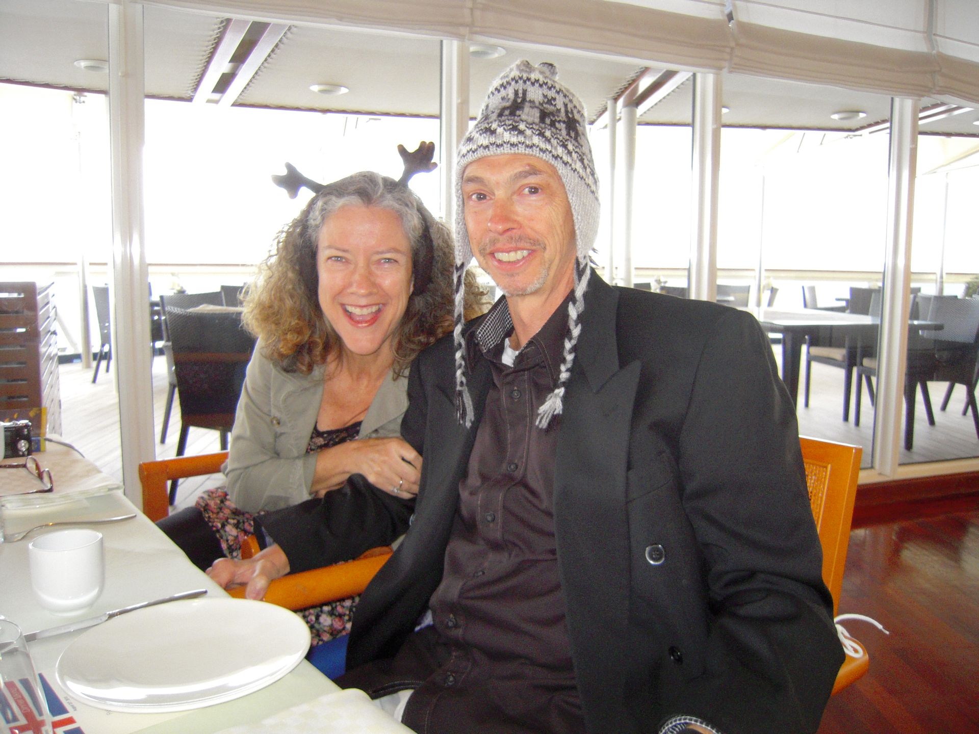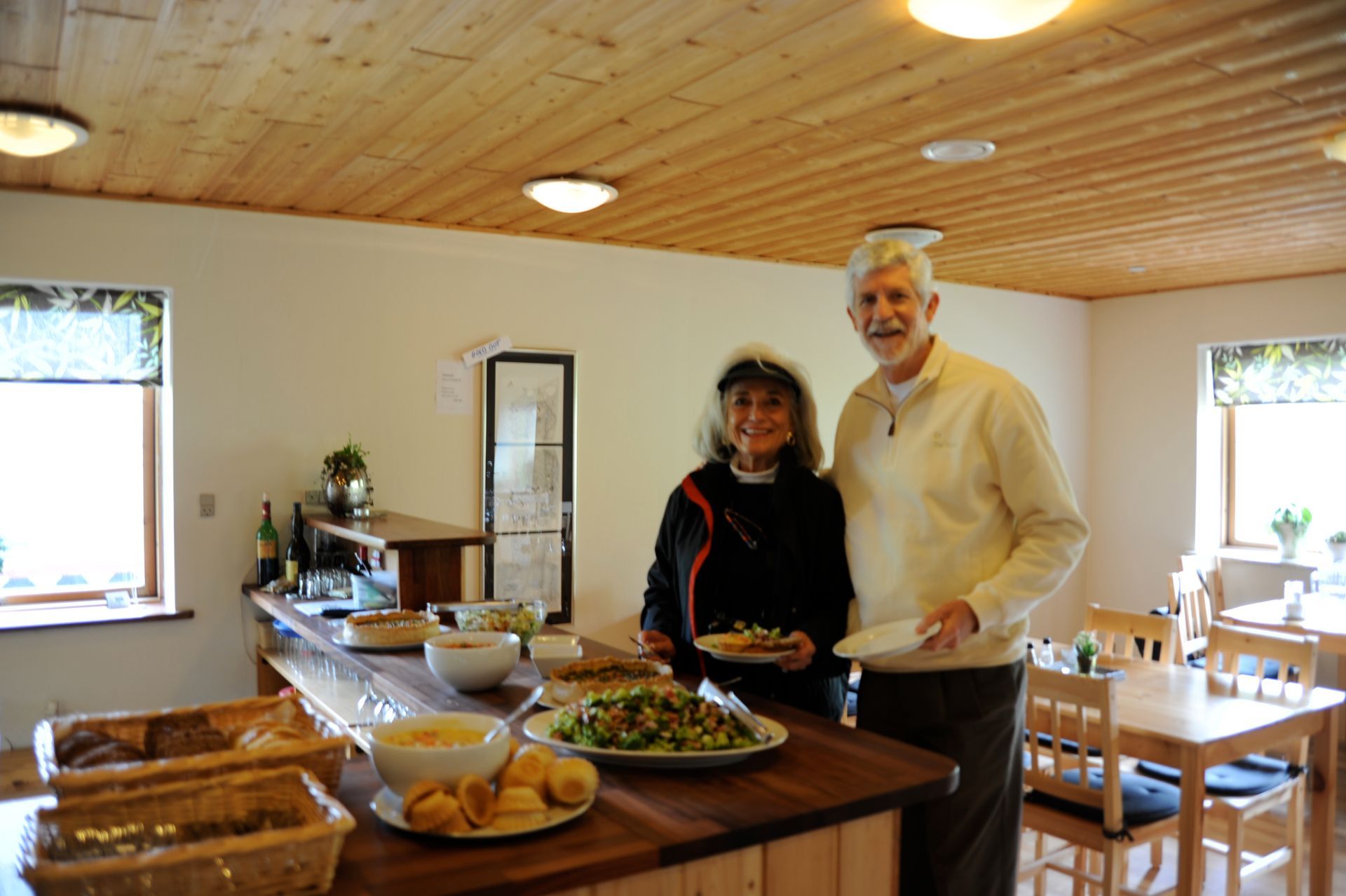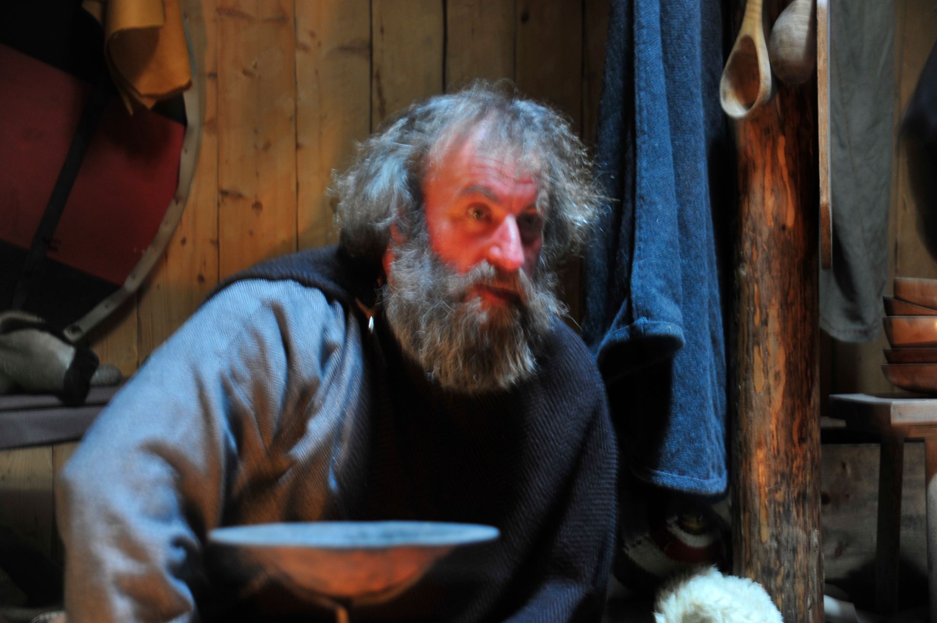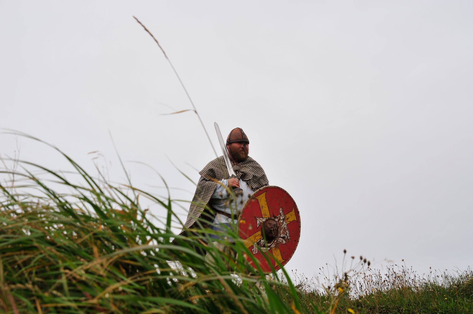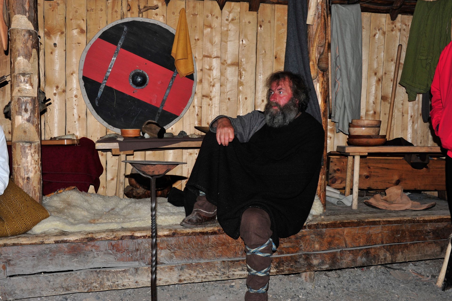 The ruins themselves are not much to look at - large grass-covered mounds arranged in a square. So you need a good guide. Unfortunately since we were now out of the Arctic, we had forgotten the cardinal rule of dress: layer, layer, layer; and so we stood in a bitter-cold wind unprepared for the chill, listening to a very long-winded explanation from the Guide about the Vikings and their culture, literally freezing! At one point I looked around to see that Len had disappeared; and, I had grown so cold that I ran on ahead and ducked into one of the restored huts. Inside, I was rewarded by the sight of Len sitting comfortably, as he warmed his hands by a crackling fire while engaged in conversation with an actor-historian dressed in period costume, who was explaining the activities that took place in that particular hut! Eyeing me, Len got a Cheshire grin on his face, and sheepishly moved over to make room for me on his hay-bale bench . . . a fine Viking he would make!!