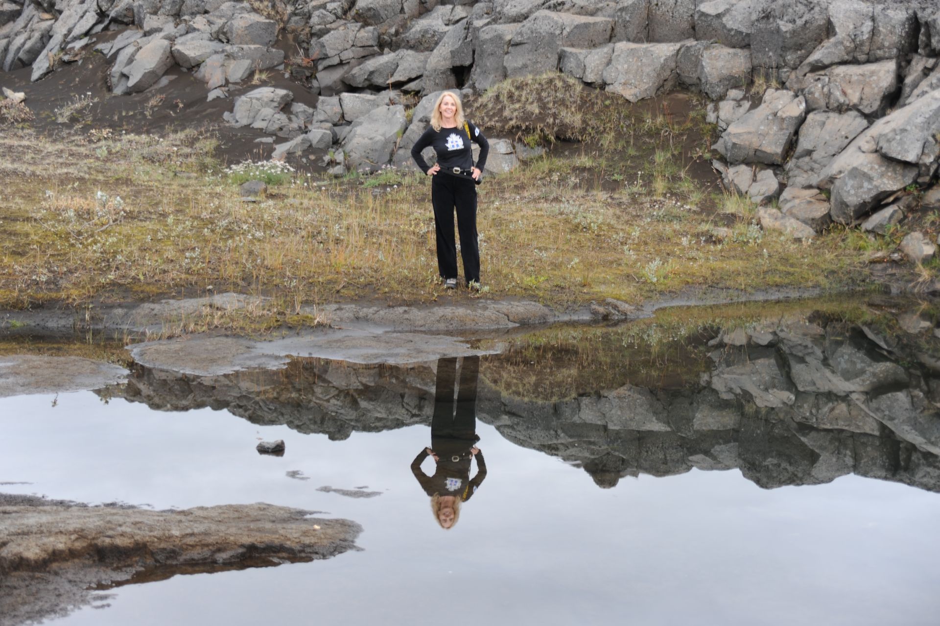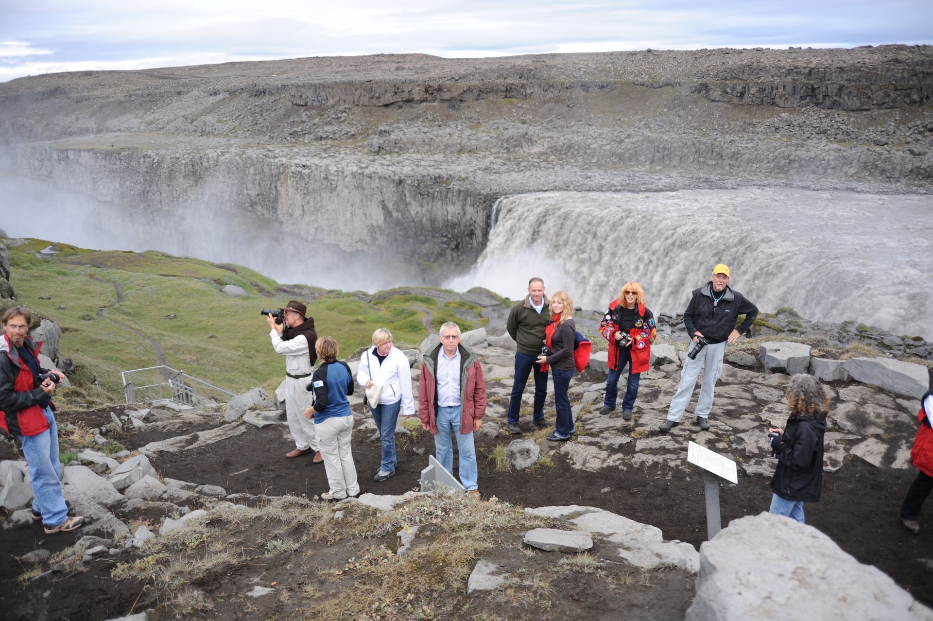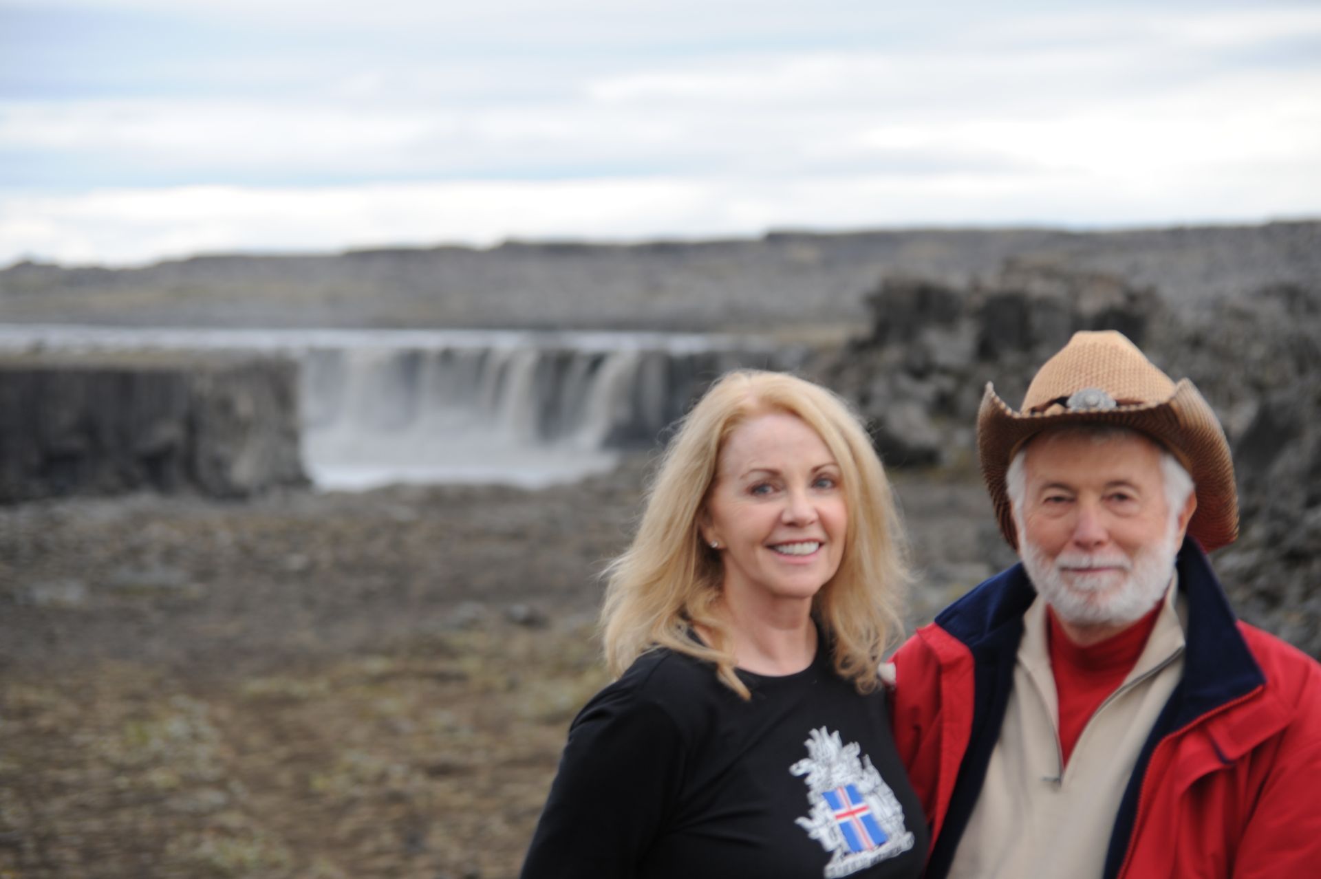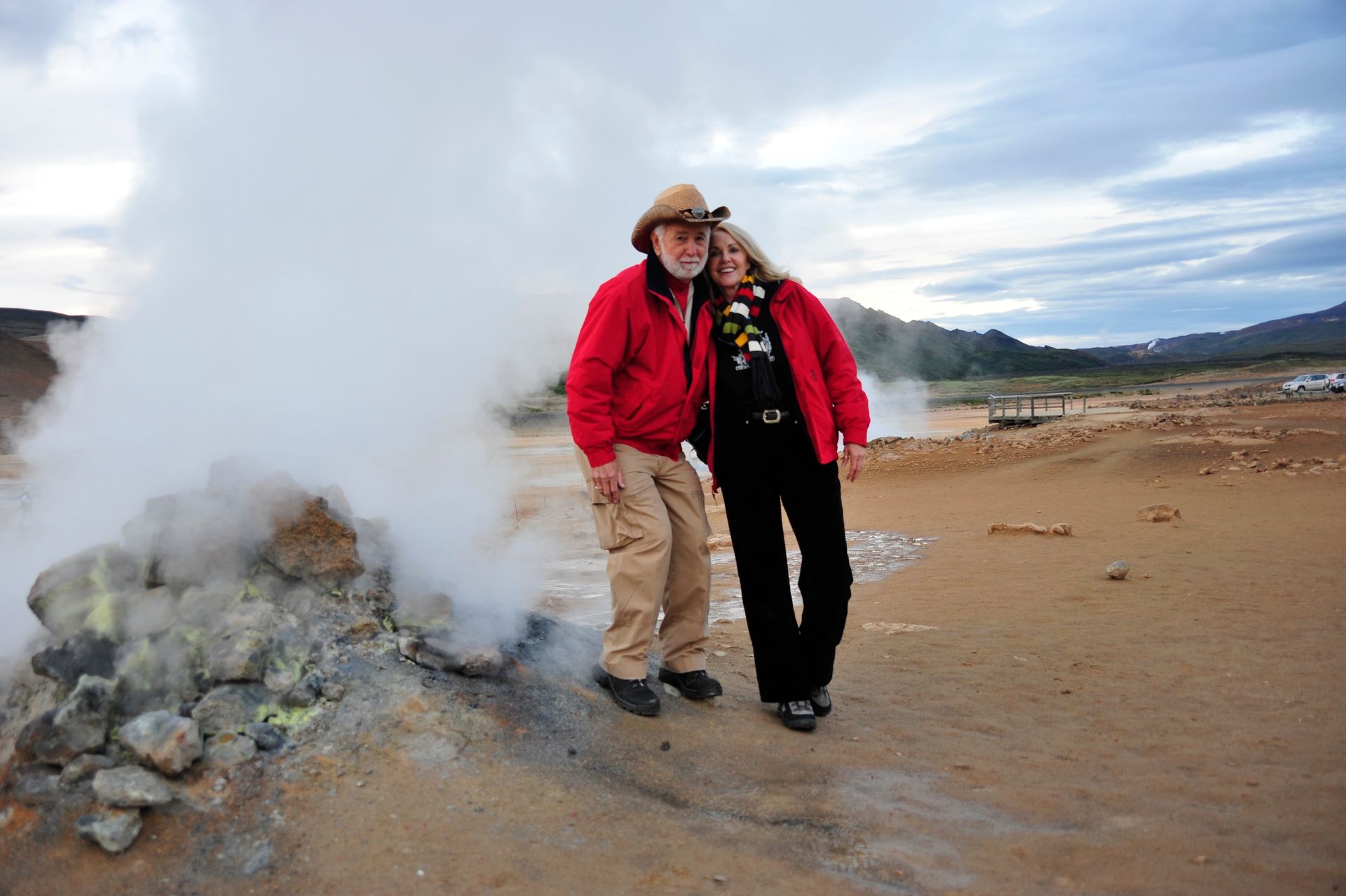 celand stands out as one of the most unique and diverse landscapes we’ve ever explored. Imagine over two dozen volcanoes; extensive deserts; spectacular waterfalls; gushing geysers; glaciers that cover a tenth of the country; hot springs and geo-thermal activity; sulfur fields with bubbling mud pots: all of which combine to make up a topography that changes in the blink of an eye! The rugged interior of Iceland beckons, much like the American wilderness once did to pioneers, to be explored; and, because the unpaved roads will mostly not be encumbered with other tourists; or any highway patrol; or be burdened by safety rules and roped-off areas; there is a wonderful sense of freedom that imbues sightseeing on this huge island. Freedom. Get too close to that mud pot, buddy, and you just might topple in – the onus is on you to be smart enough to stand back from that Geyer that is about to blow! Refreshing, idea huh! Keeping that in mind, the drivers in our group carefully surveyed, even measured with a stick, the first few water-filled streams we had to traverse’ however, the minute Len threw caution to the wind, and drove through one fast enough to momentarily hide his car from sight, the bar was raised. As Geoff later put it, “even the gals got a hit of testosterone,” and the chase was on. We stopped at Hasavik for lunch and a quick tour of the Phallological museum . . . ever conjectured the size of a Blue Whale’s penis? Other stops included Dettifoss and Selfoss Waterfalls. We drove through Nordurland Eystra area and visited Namafjall Hverir (mud pots & steam), Fossholl Falls; and spent the night at Hotel Geyzer enjoying the sight of Strokkur Geyzer extruding a jet of steaming water that that shot 60 to 100 feet skywards every 8 to 10 minutes. Driving through the remote Sudhurland valley we were mesmerized by mountains covered with green moss slashed with black lava and stippled with stunning waterfalls. Our eyes could not open wide enough to take it all in, and our cameras failed to capture the essence. Neither words nor photos are adequate to convey the degree of adventure we experienced; for although we traveled as a group, the awesome setting conjured up inner visions that can best be shared by silence.