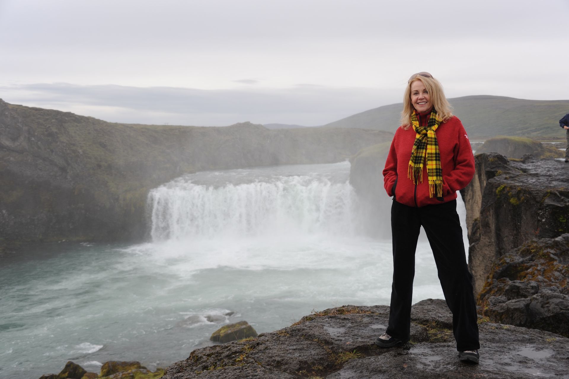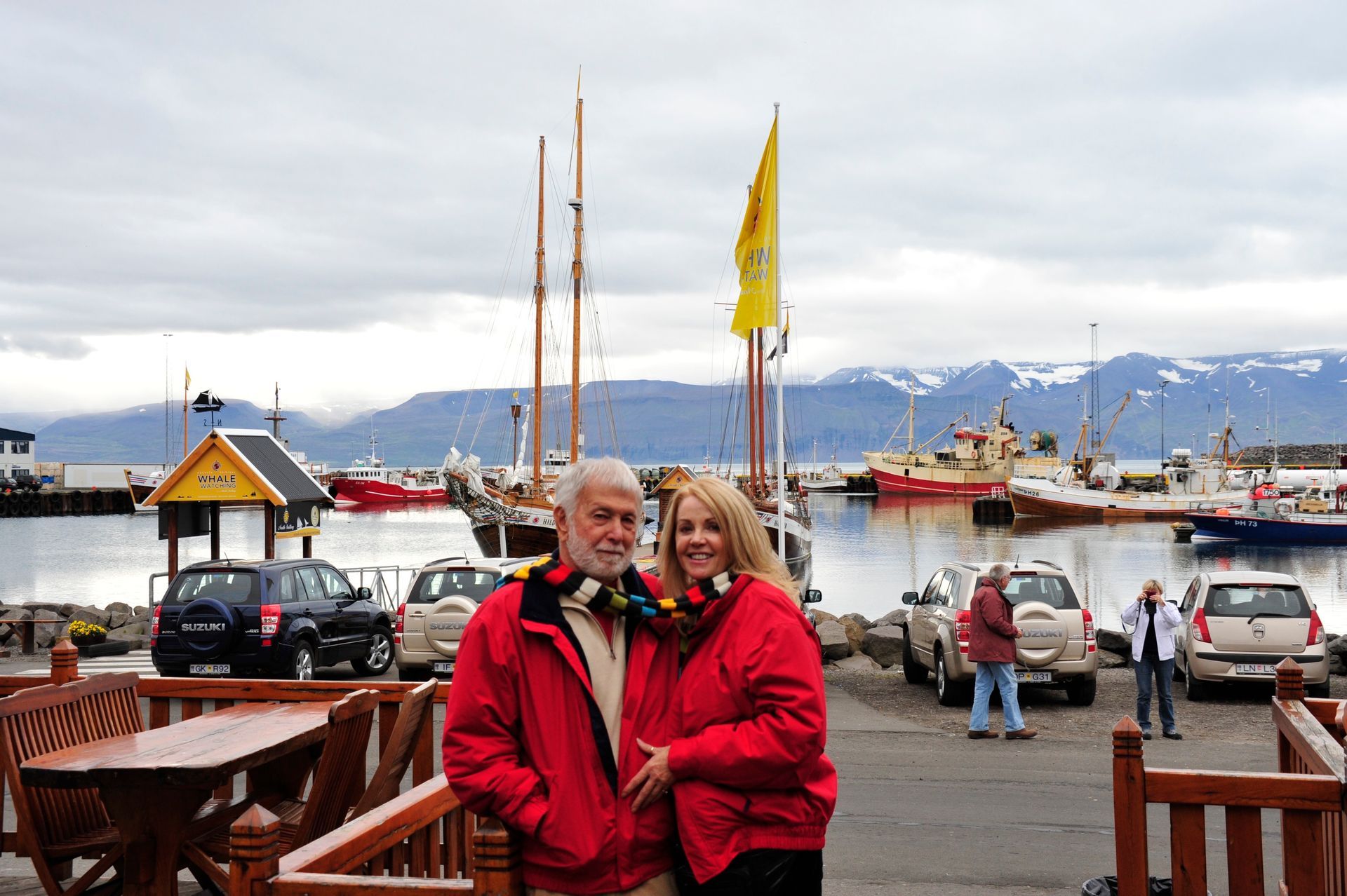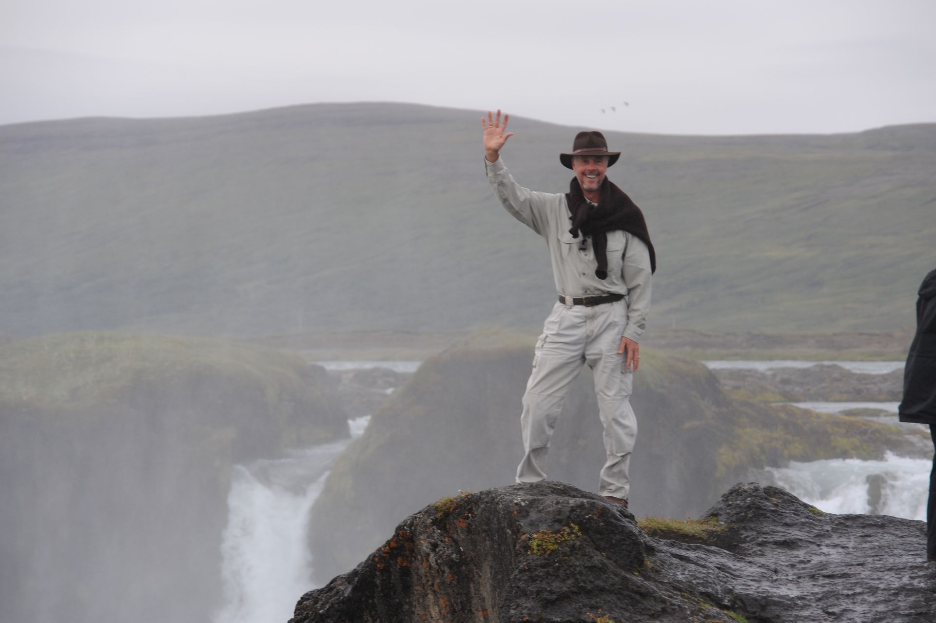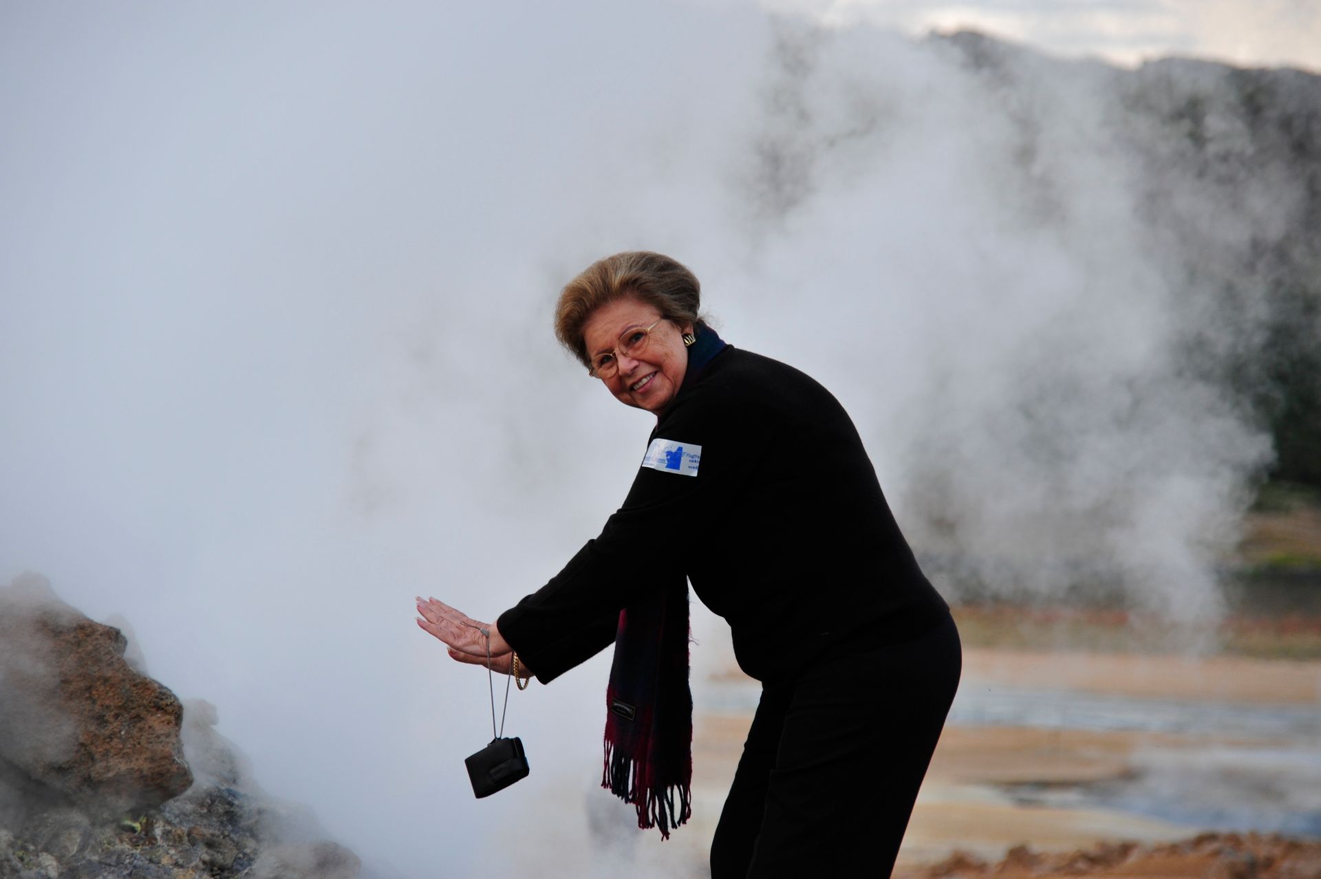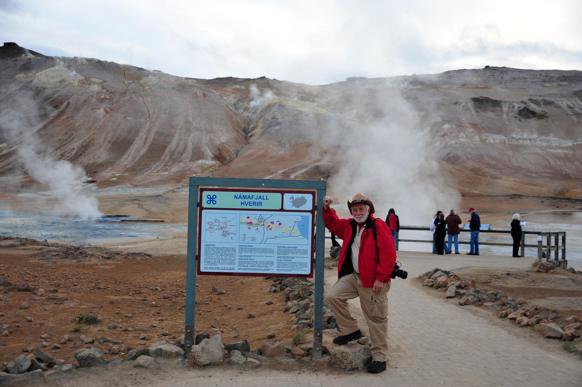 celand stands out as one of the most unique and diverse landscapes we’ve ever explored. Imagine over two dozen volcanoes; extensive deserts; spectacular waterfalls; gushing geysers; glaciers that cover a tenth of the country; hot springs and geo-thermal activity; sulfur fields with bubbling mud pots: all of which combine to make up a topography that changes in the blink of an eye! The rugged interior of Iceland beckons, much like the American wilderness once did to pioneers, to be explored; and, because the unpaved roads will mostly not be encumbered with other tourists; or any highway patrol; or be burdened by safety rules and roped-off areas; there is a wonderful sense of freedom that imbues sightseeing on this huge island. Freedom. Get too close to that mud pot, buddy, and you just might topple in – the onus is on you to be smart enough to stand back from that Geyer that is about to blow! Refreshing, idea huh! Keeping that in mind, the drivers in our group carefully surveyed, even measured with a stick, the first few water-filled streams we had to traverse’ however, the minute Len threw caution to the wind, and drove through one fast enough to momentarily hide his car from sight, the bar was raised. As Geoff later put it, “even the gals got a hit of testosterone,” and the chase was on. We stopped at Hasavik for lunch and a quick tour of the Phallological museum . . . ever conjectured the size of a Blue Whale’s penis? Other stops included Dettifoss and Selfoss Waterfalls. We drove through Nordurland Eystra area and visited Namafjall Hverir (mud pots & steam), Fossholl Falls; and spent the night at Hotel Geyzer enjoying the sight of Strokkur Geyzer extruding a jet of steaming water that that shot 60 to 100 feet skywards every 8 to 10 minutes. Driving through the remote Sudhurland valley we were mesmerized by mountains covered with green moss slashed with black lava and stippled with stunning waterfalls. Our eyes could not open wide enough to take it all in, and our cameras failed to capture the essence. Neither words nor photos are adequate to convey the degree of adventure we experienced; for although we traveled as a group, the awesome setting conjured up inner visions that can best be shared by silence.