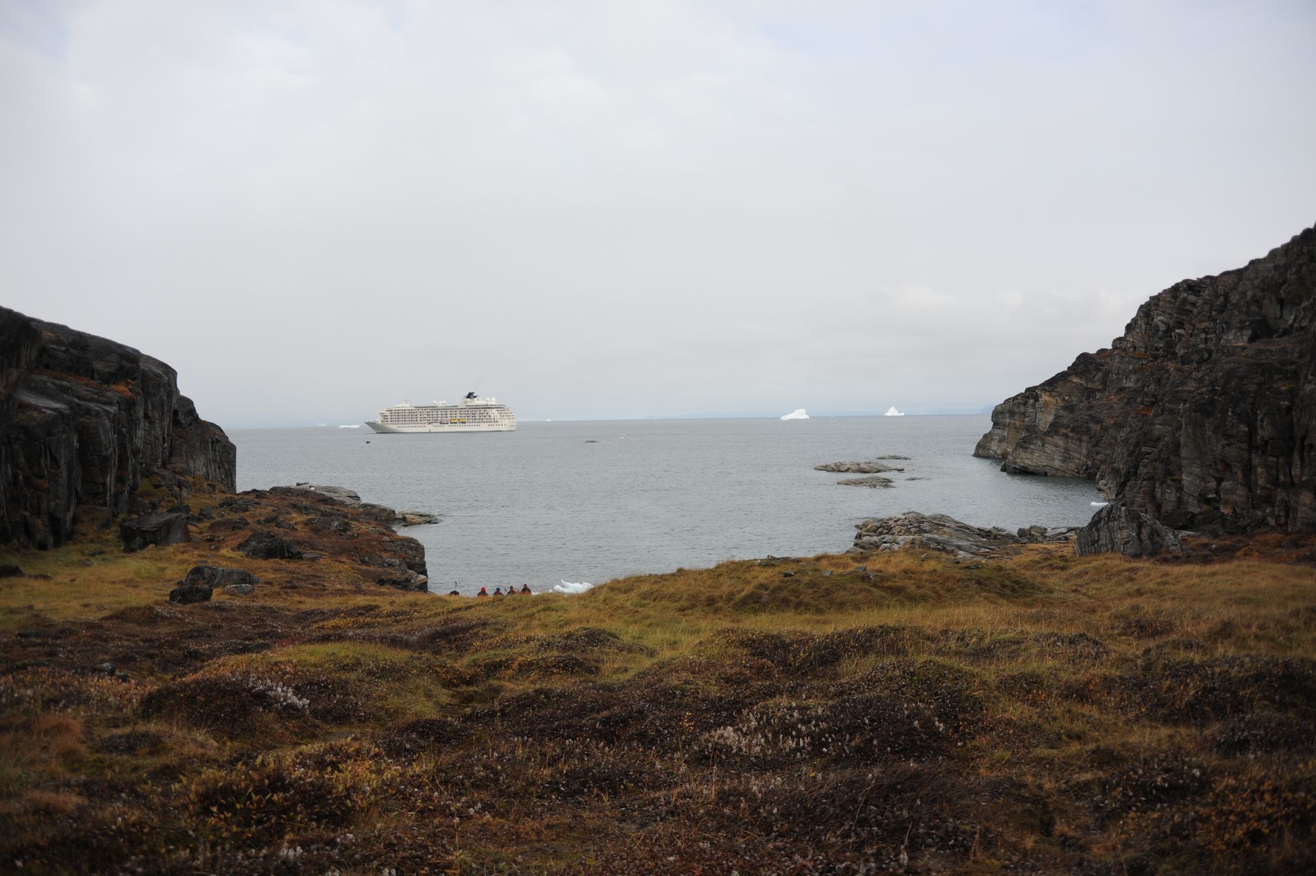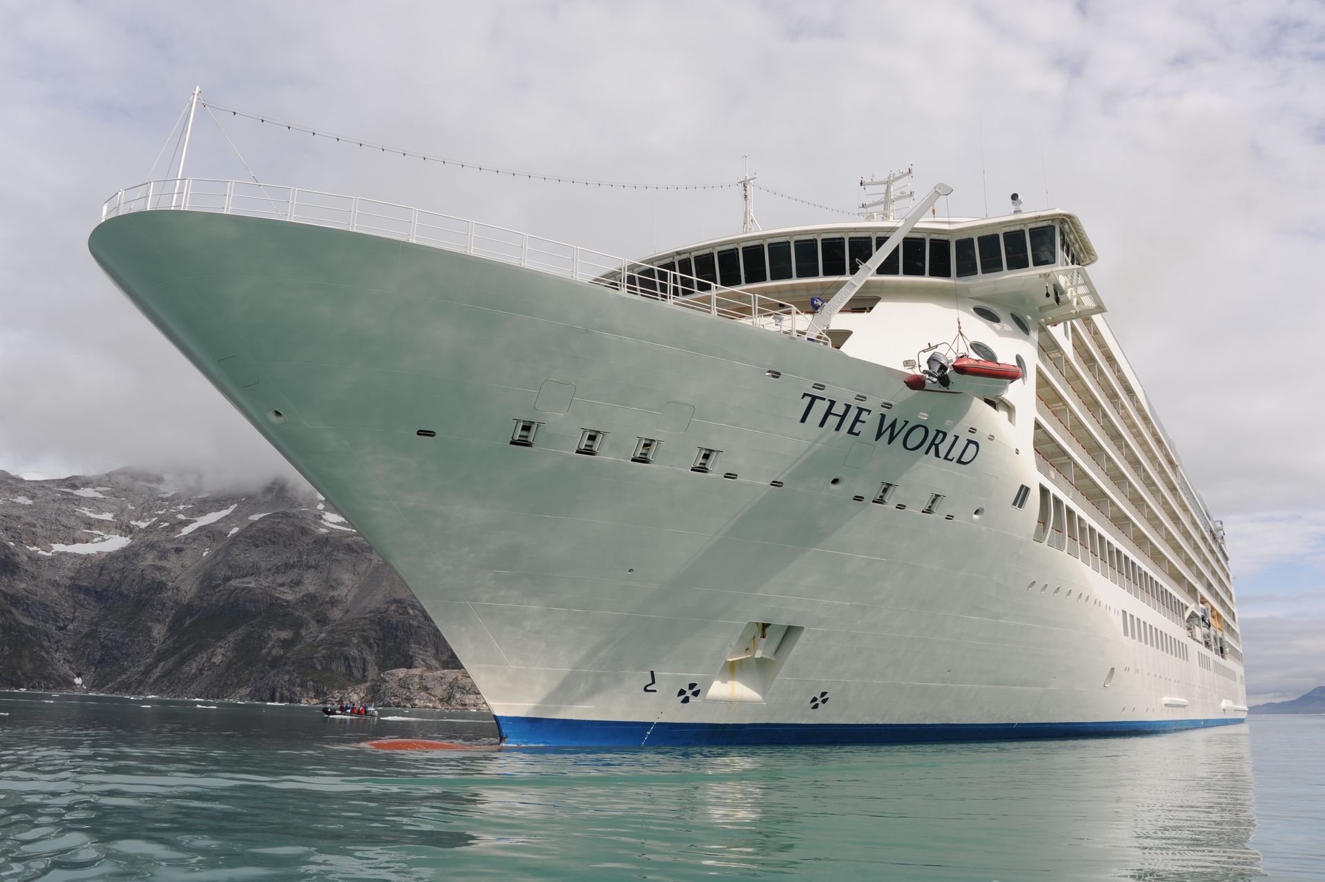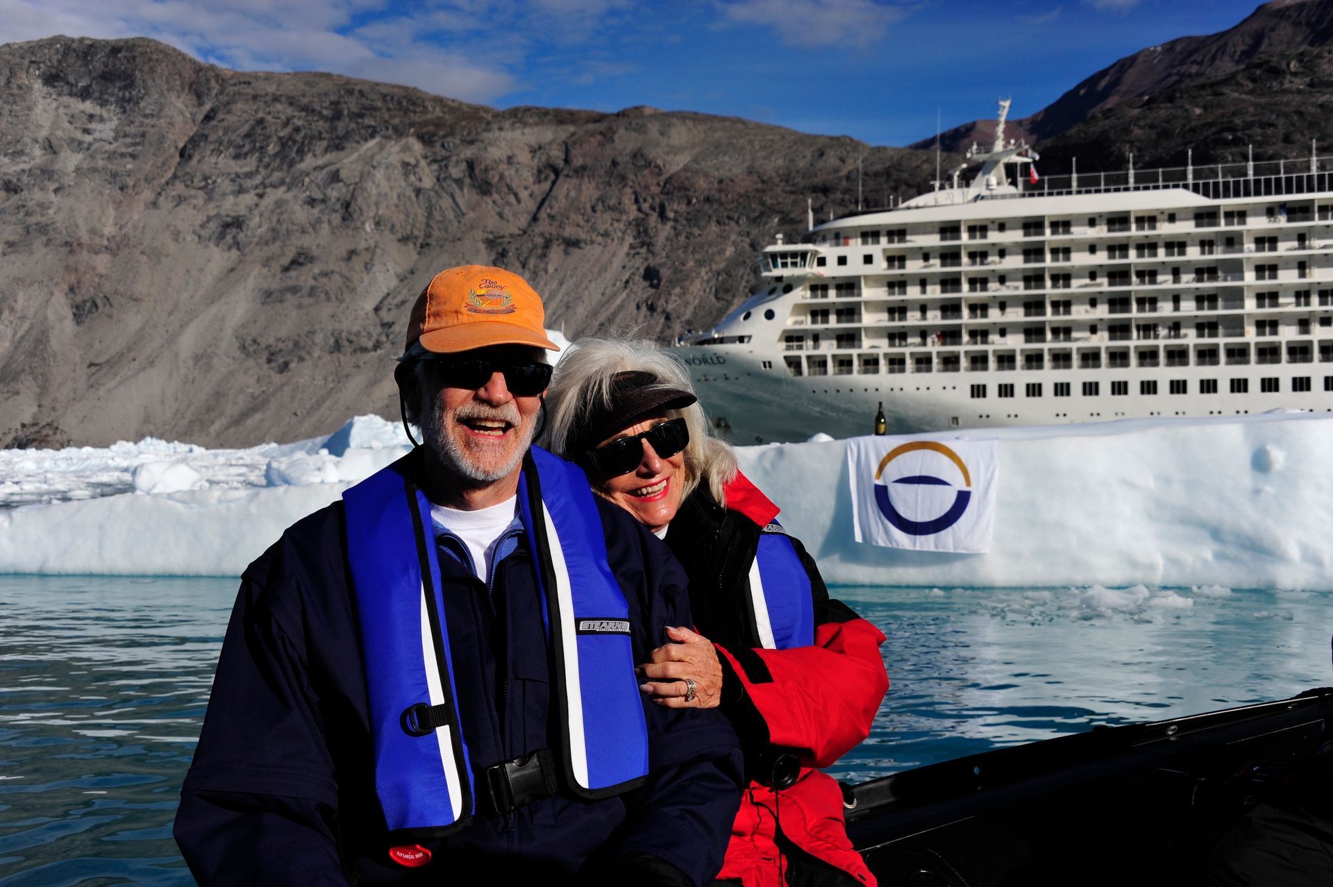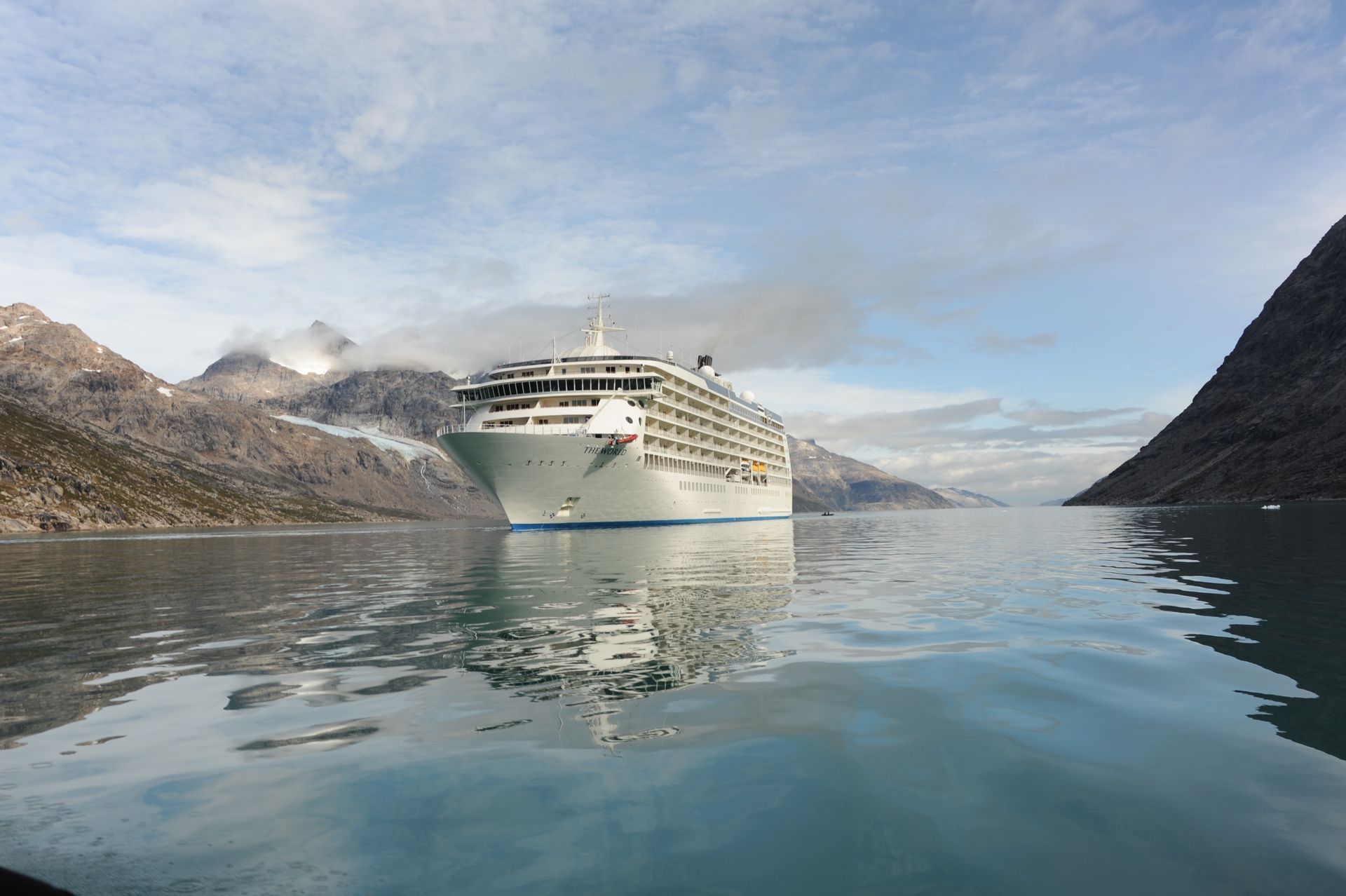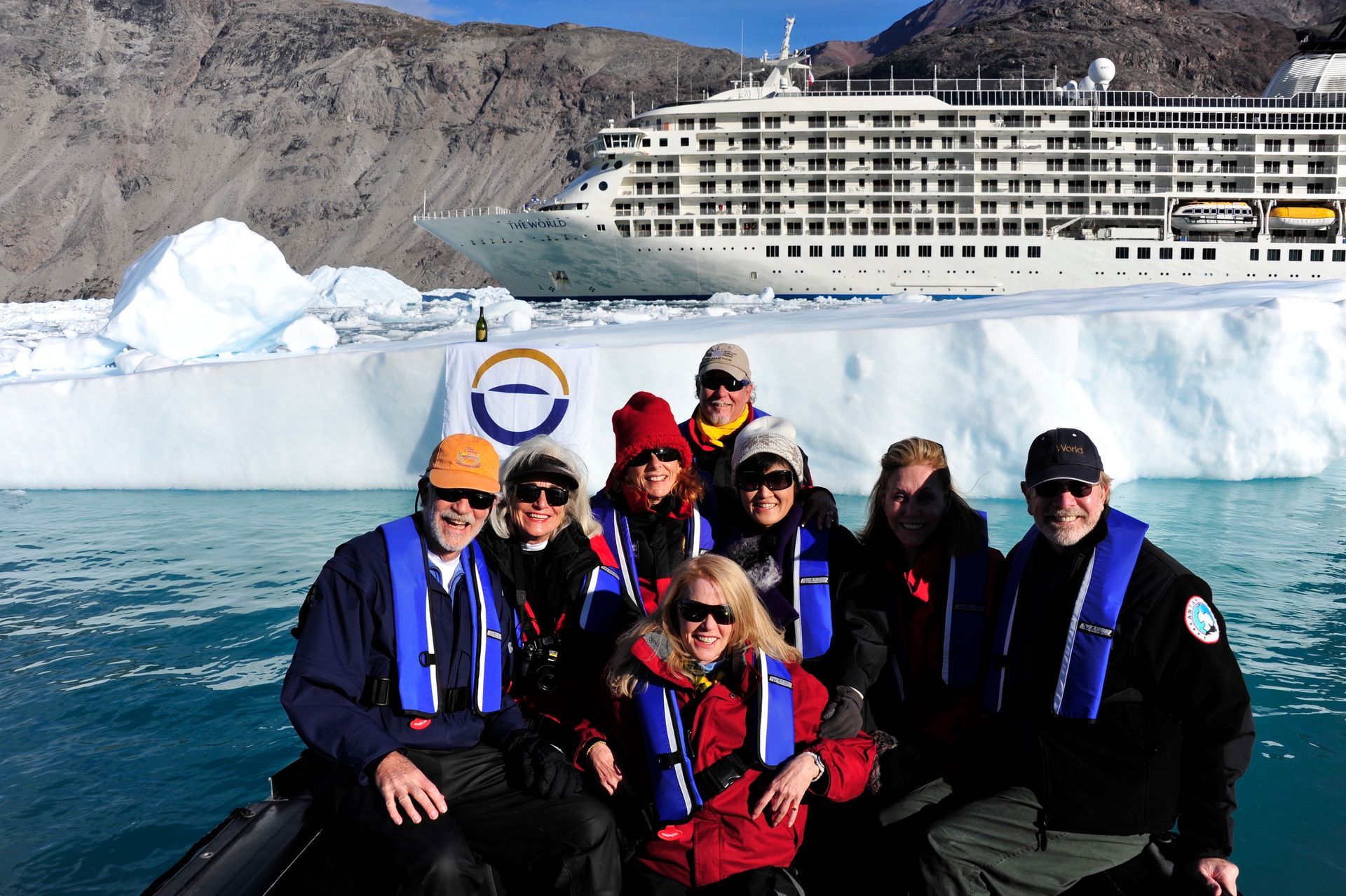 As The World cut through thick ice caps surrounding the rugged eastern coast of our planet’s largest island, excitement pulsed throughout the ship as we scanned for our first glimpse the wild, remote, and virtually uninhibited coastline of Greenland. Taking advantage of the good weather and calm sea, we anchored then joined our Expedition Teams in Zodiac rides to shore, for guided hikes through the dramatic landscape. The moment our feet touched tundra, there was a palpable shift in our demeanor: we morphed into groups of children and could not be constrained from roaming over the dense tundra as if we’d never seen land before! Prince Christian Sound is where icebergs are born of compacted ancient snows that calve into the sound at the glacier’s edge. We set out via Zodiacs to discover this pristine world of bays, inlets and Glaciers.