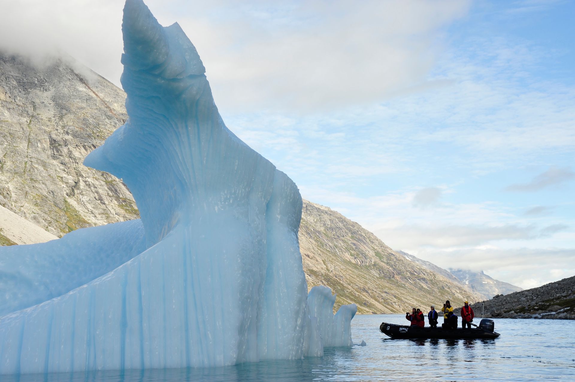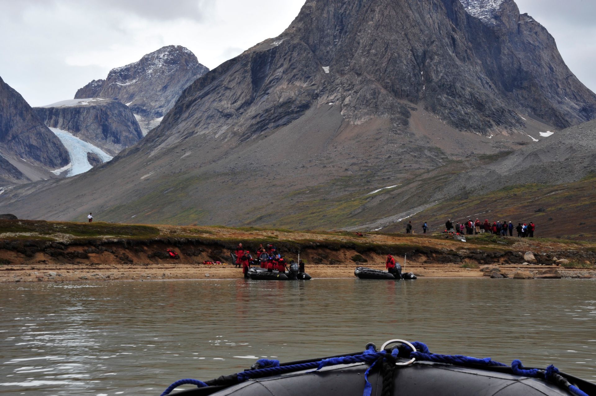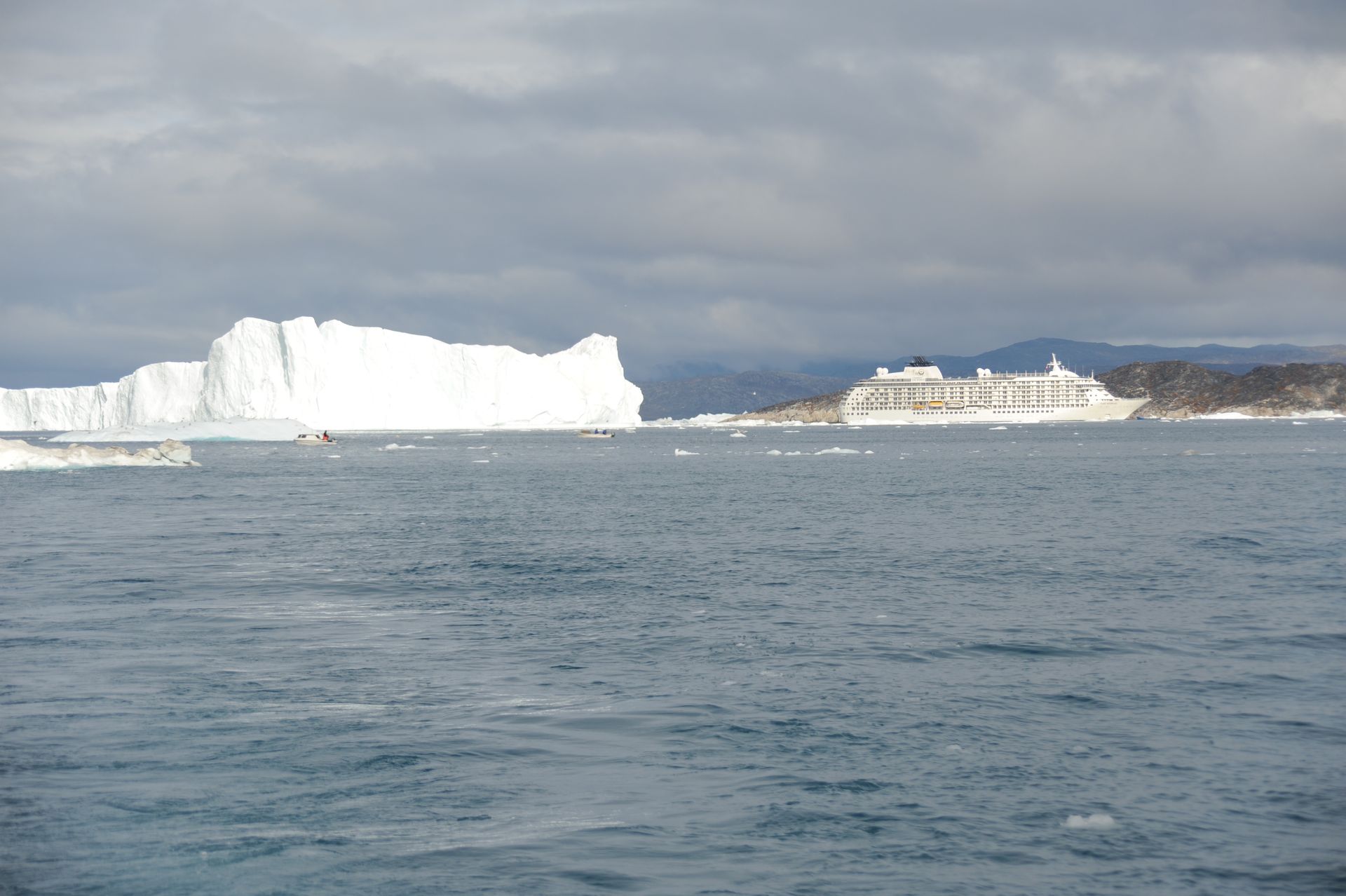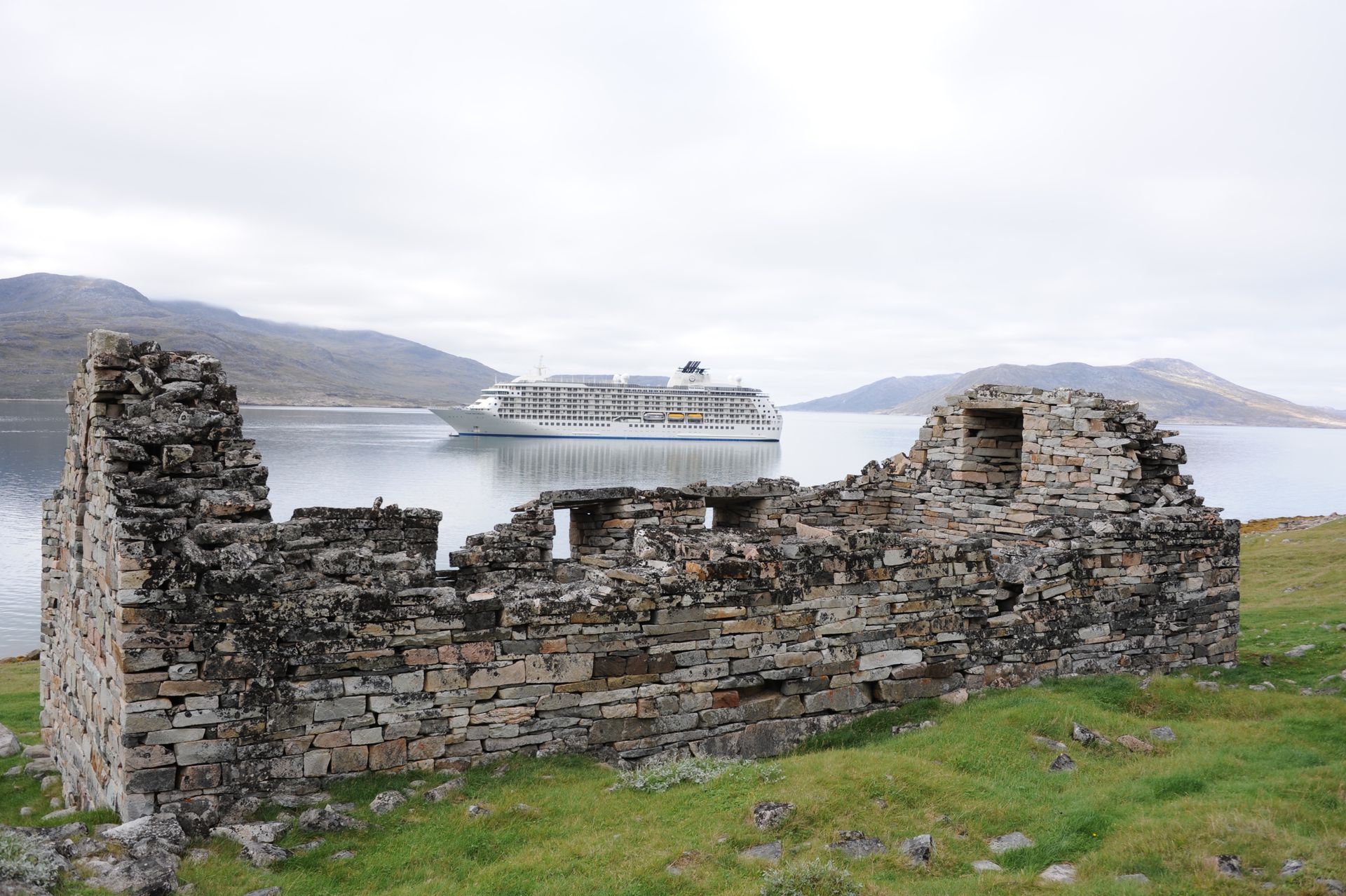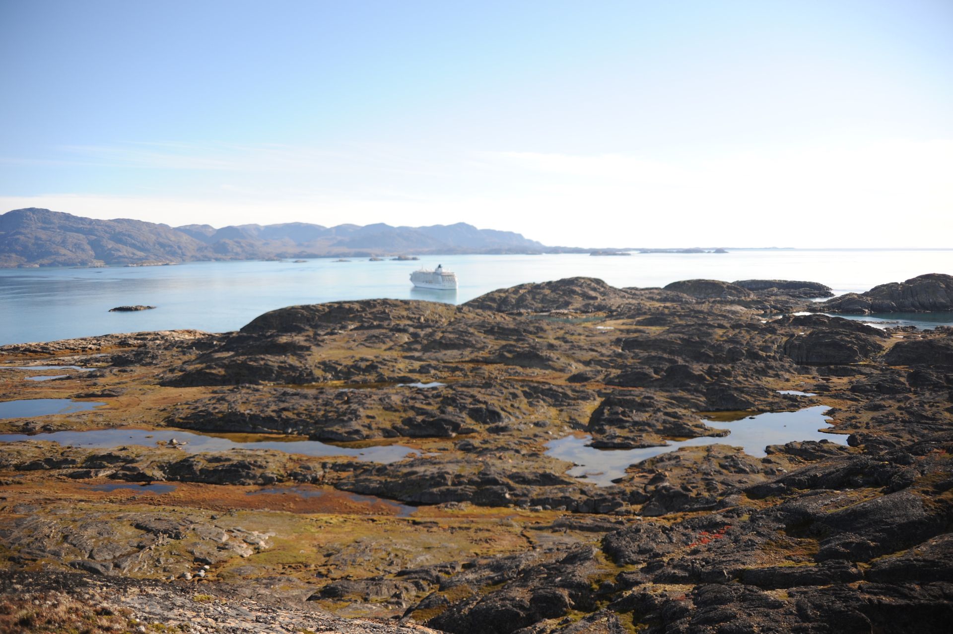 As The World cut through thick ice caps surrounding the rugged eastern coast of our planet’s largest island, excitement pulsed throughout the ship as we scanned for our first glimpse the wild, remote, and virtually uninhibited coastline of Greenland. Taking advantage of the good weather and calm sea, we anchored then joined our Expedition Teams in Zodiac rides to shore, for guided hikes through the dramatic landscape. The moment our feet touched tundra, there was a palpable shift in our demeanor: we morphed into groups of children and could not be constrained from roaming over the dense tundra as if we’d never seen land before! Prince Christian Sound is where icebergs are born of compacted ancient snows that calve into the sound at the glacier’s edge. We set out via Zodiacs to discover this pristine world of bays, inlets and Glaciers.