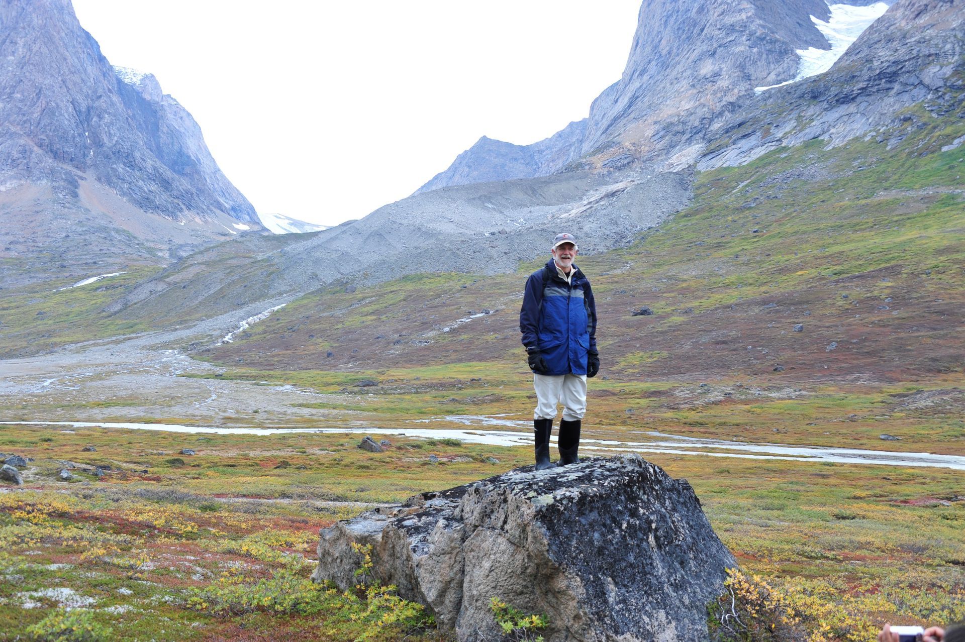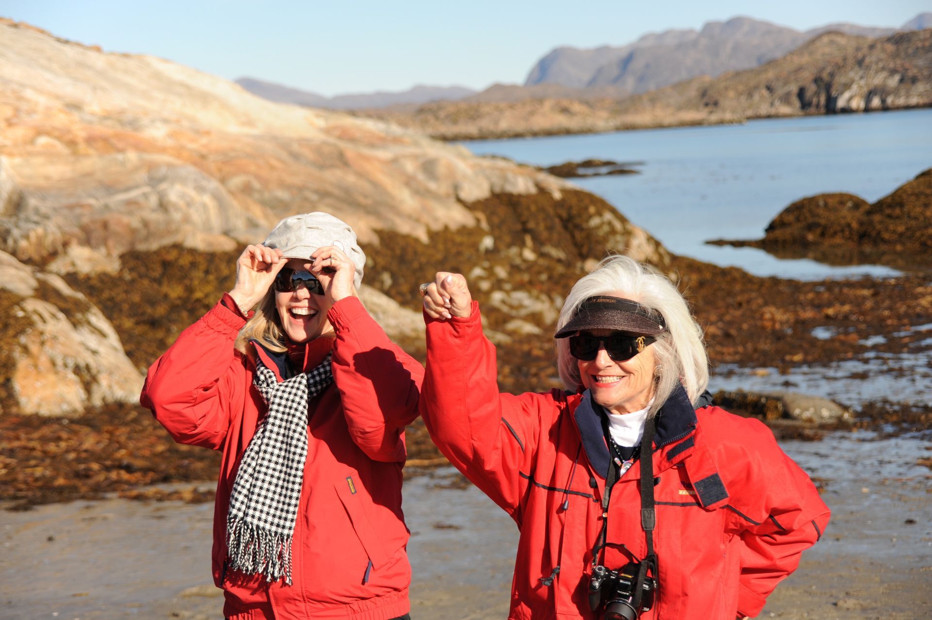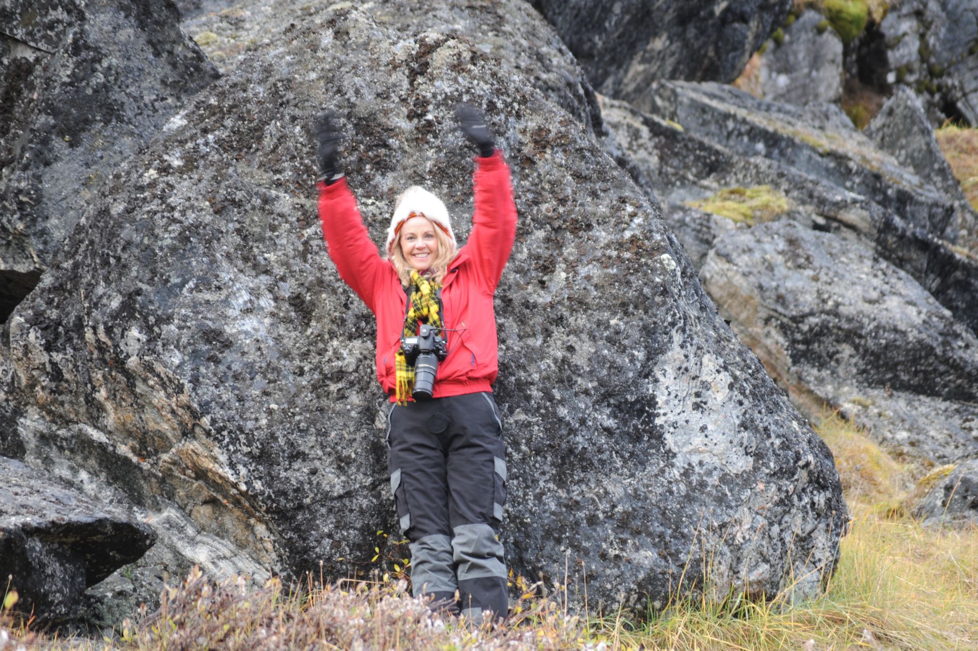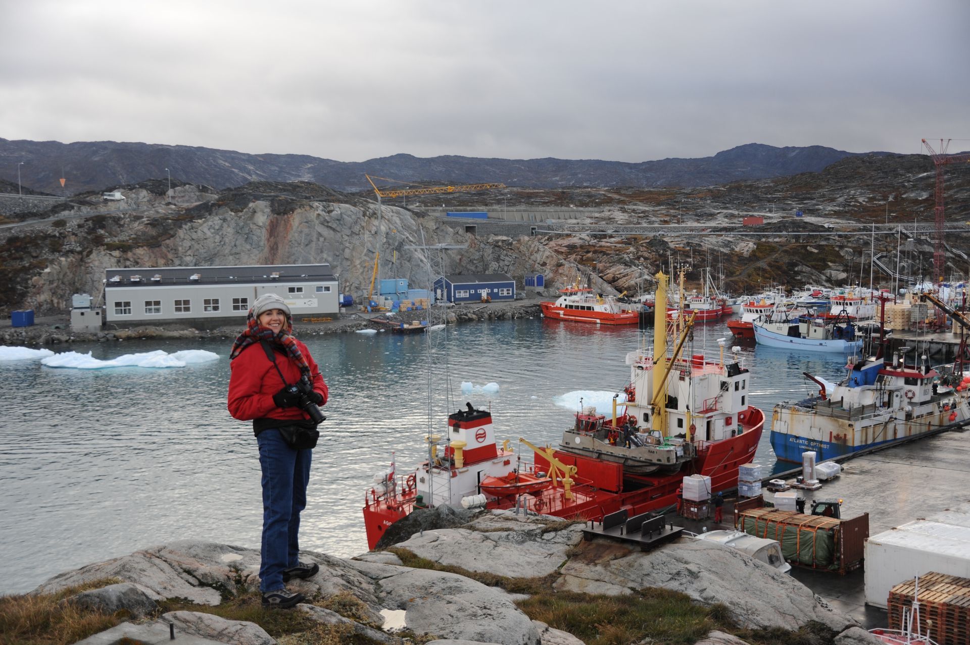 At Hvalsey, we explored the ruins of Hvalsey Church, built by Norse Settlers from Iceland who populated the area from 985 to 1410AD. Southern Greenland’s largest village, Qaqortoq, is populated with striking primary colored wood colonial buildings. While there, we toured the Great Greenland Furhouse and saw the stretched dried hides of the many types of seals that populate the area. They have a large export business and we saw literally thousands of dyed sealskins stacked and ready for shipment. Brattahild is the site of Erik the Red’s Farmstead. It is here that in the years 1961-64 archaeologists uncovered the remains of a small Christian church, dated to 1000 AD, believed to be Erik’s wife, Tjoldhilde’s, Church. She and her son, Lief had converted to Christianity, but Erik the Red never relinquished the Norse Gods, who had accompanied him safely to this new land. At the very tiptop of a rather steep and rocky hill on Sydday Island stands a lighthouse; and, Len, Dennis and Pat can proudly say they were among the hardy (or foolhardy) few who made their way to the pinnacle. Someone had to stay below to capture the feat on film, so Graci and I volunteered : )
