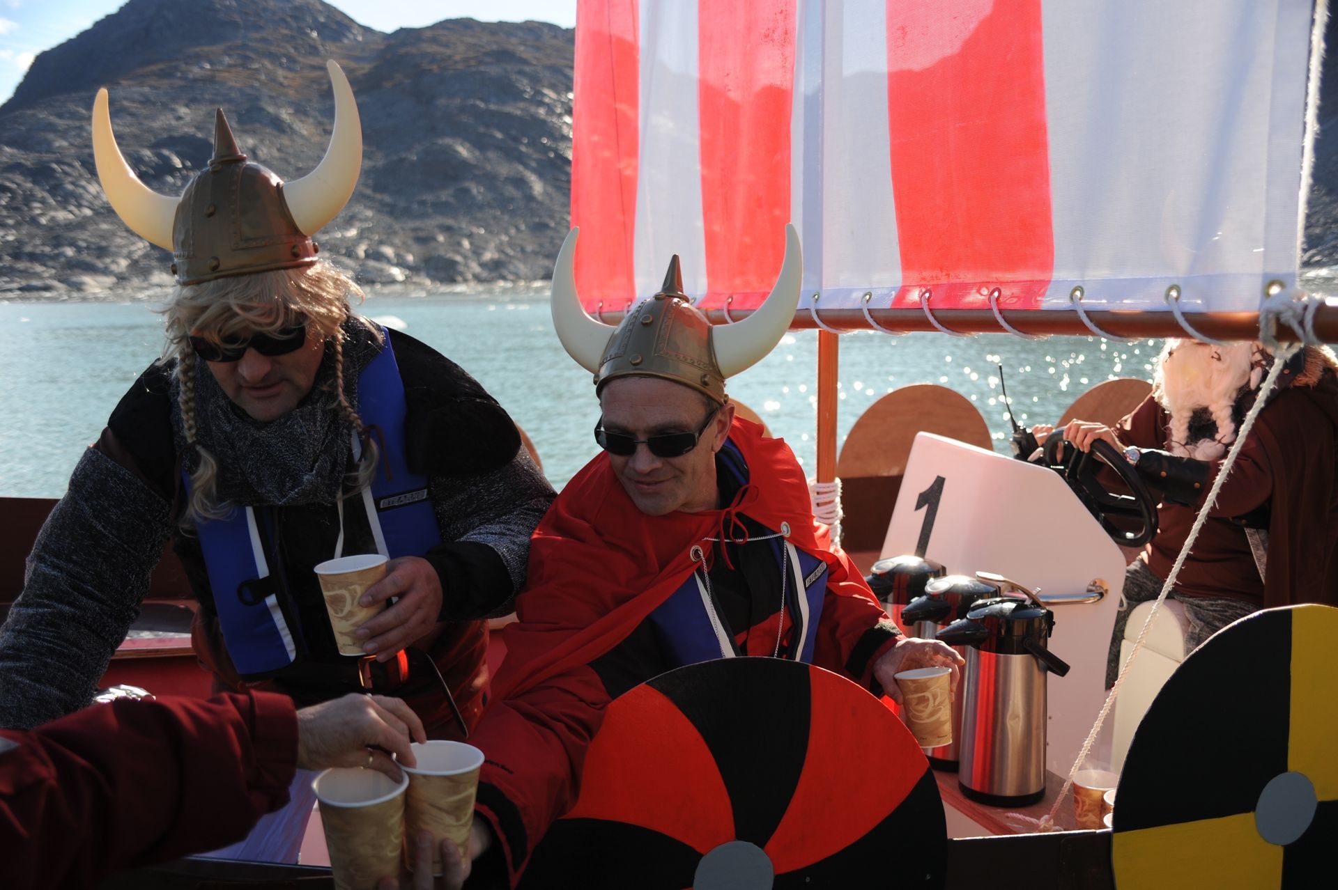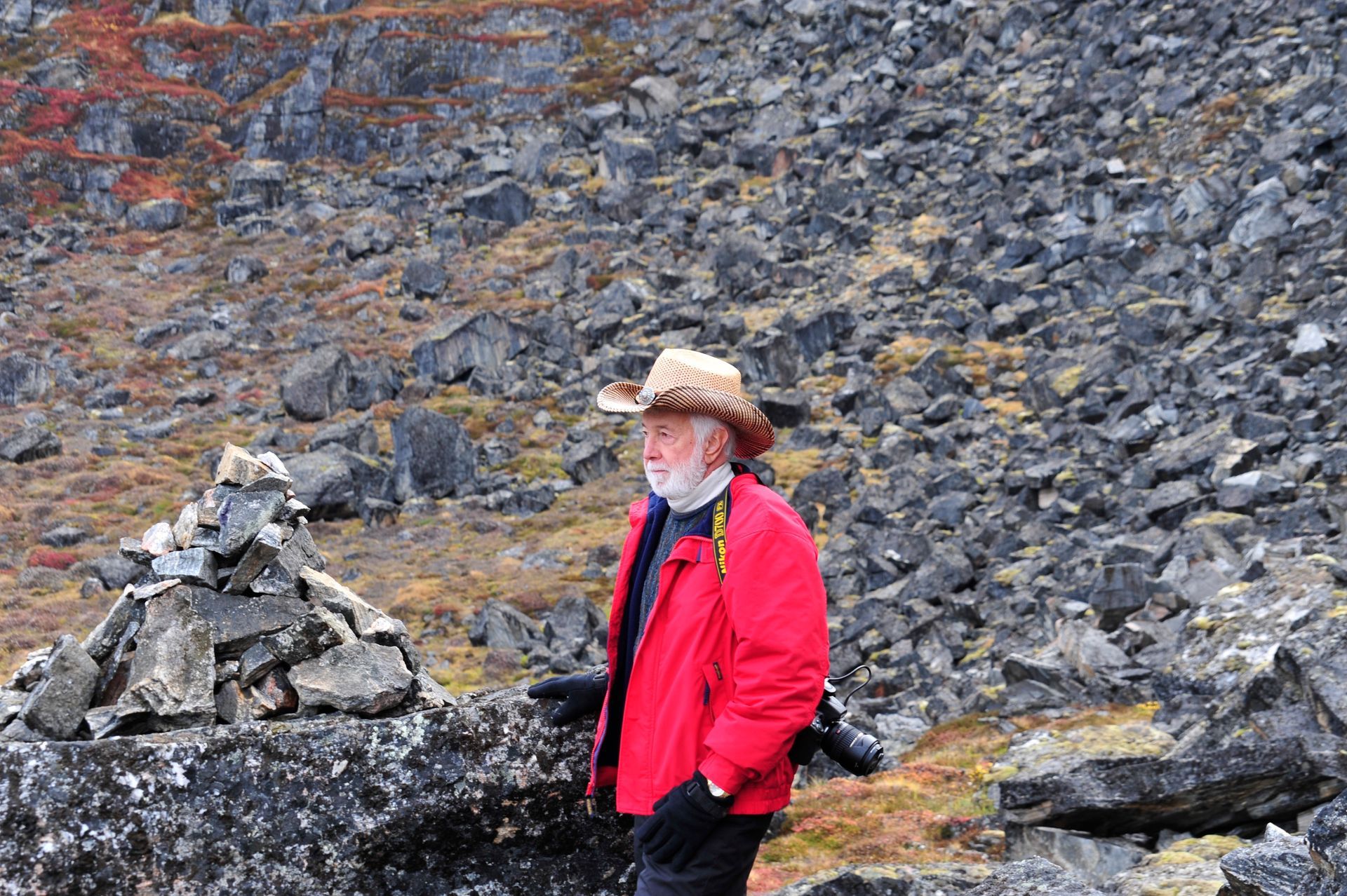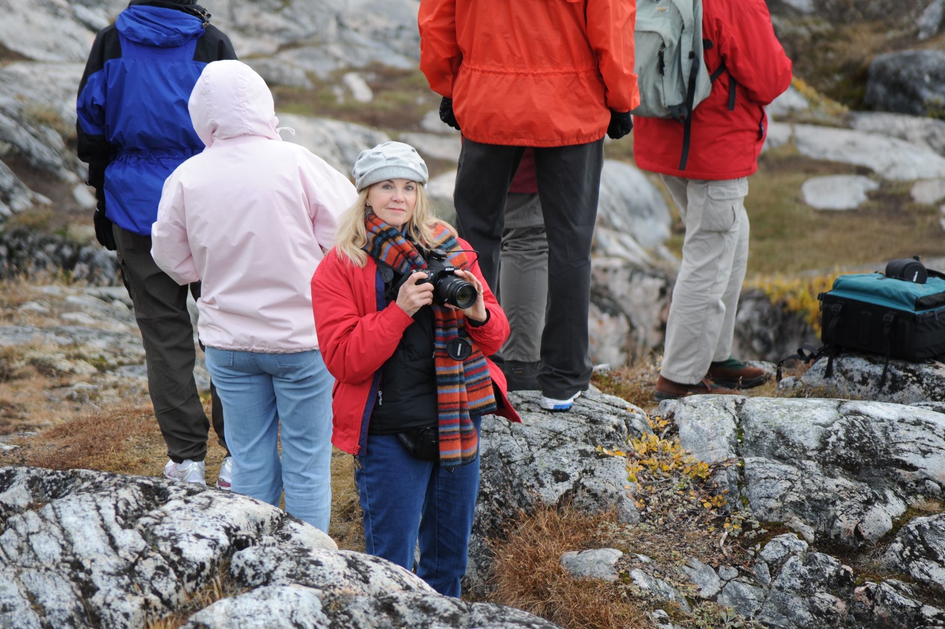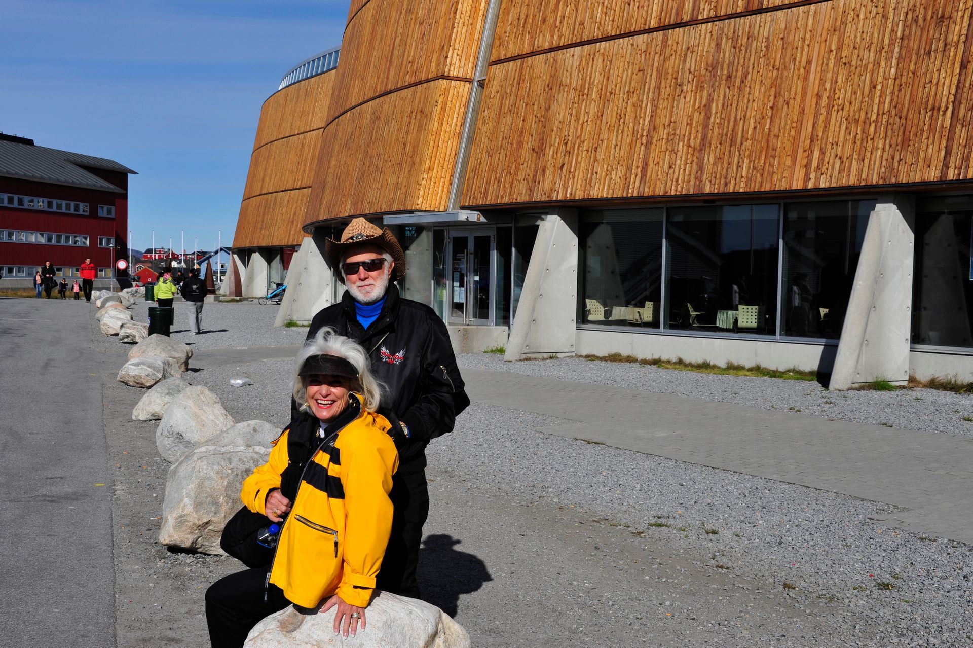 At Hvalsey, we explored the ruins of Hvalsey Church, built by Norse Settlers from Iceland who populated the area from 985 to 1410AD. Southern Greenland’s largest village, Qaqortoq, is populated with striking primary colored wood colonial buildings. While there, we toured the Great Greenland Furhouse and saw the stretched dried hides of the many types of seals that populate the area. They have a large export business and we saw literally thousands of dyed sealskins stacked and ready for shipment. Brattahild is the site of Erik the Red’s Farmstead. It is here that in the years 1961-64 archaeologists uncovered the remains of a small Christian church, dated to 1000 AD, believed to be Erik’s wife, Tjoldhilde’s, Church. She and her son, Lief had converted to Christianity, but Erik the Red never relinquished the Norse Gods, who had accompanied him safely to this new land. At the very tiptop of a rather steep and rocky hill on Sydday Island stands a lighthouse; and, Len, Dennis and Pat can proudly say they were among the hardy (or foolhardy) few who made their way to the pinnacle. Someone had to stay below to capture the feat on film, so Graci and I volunteered : )