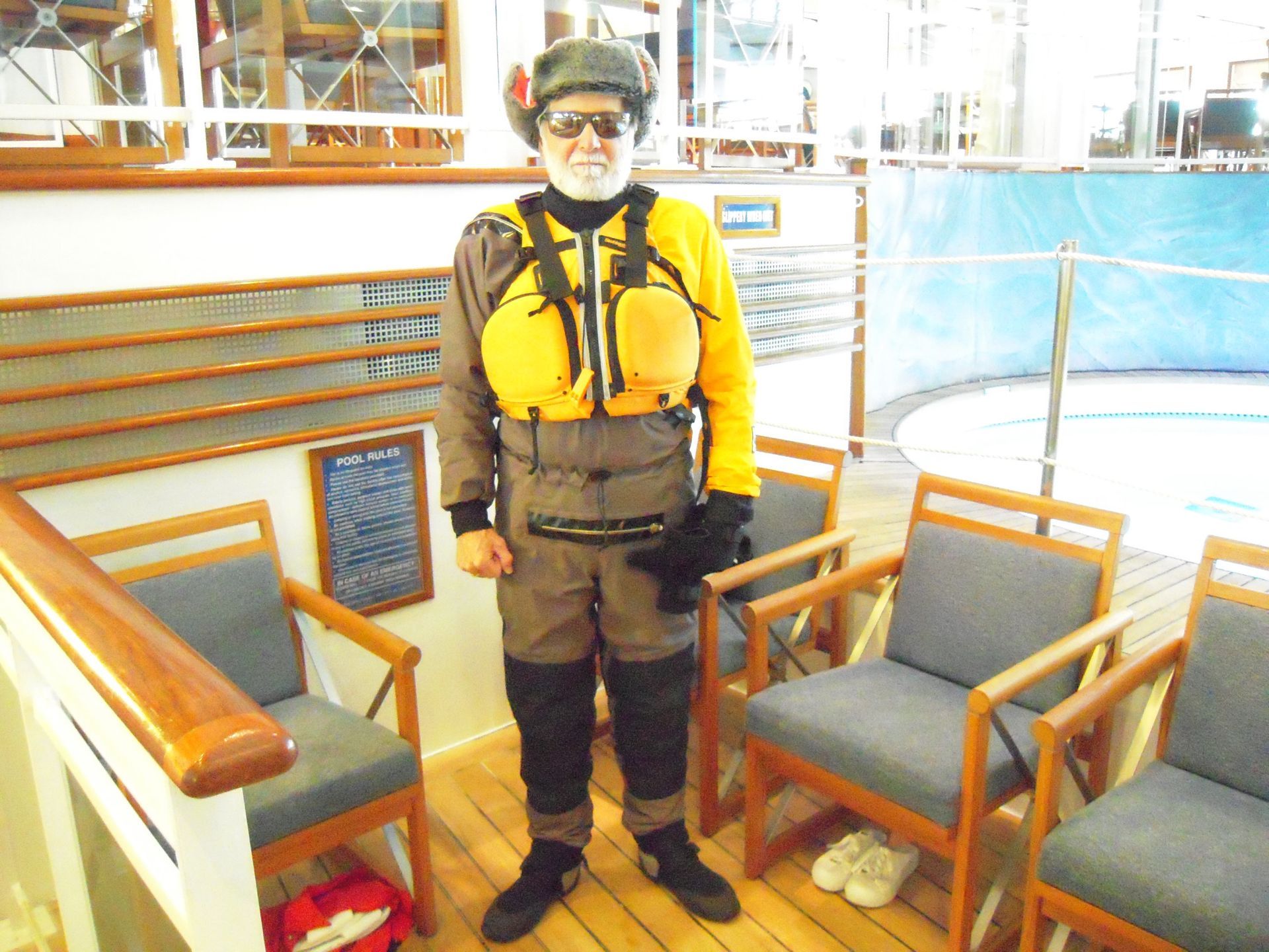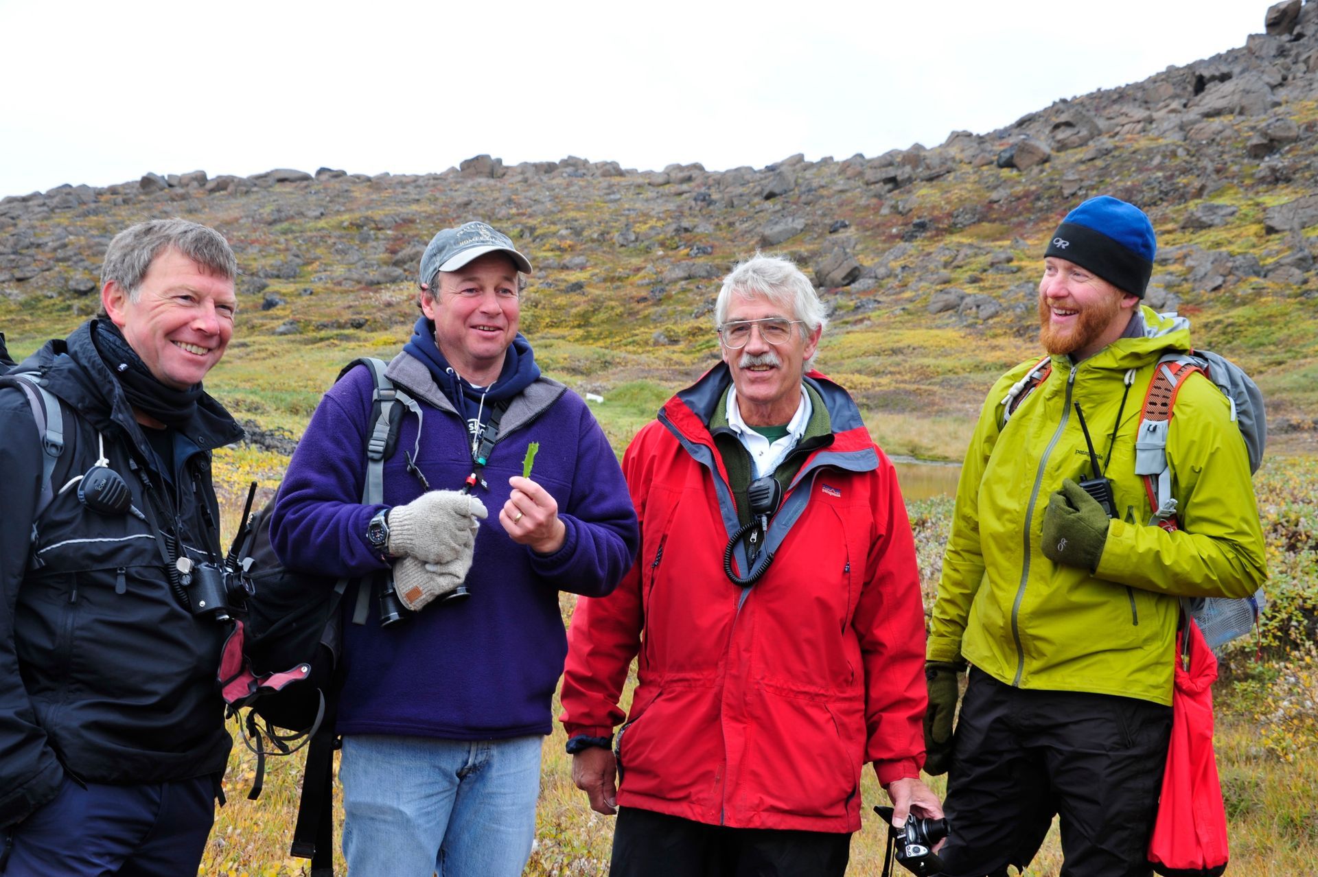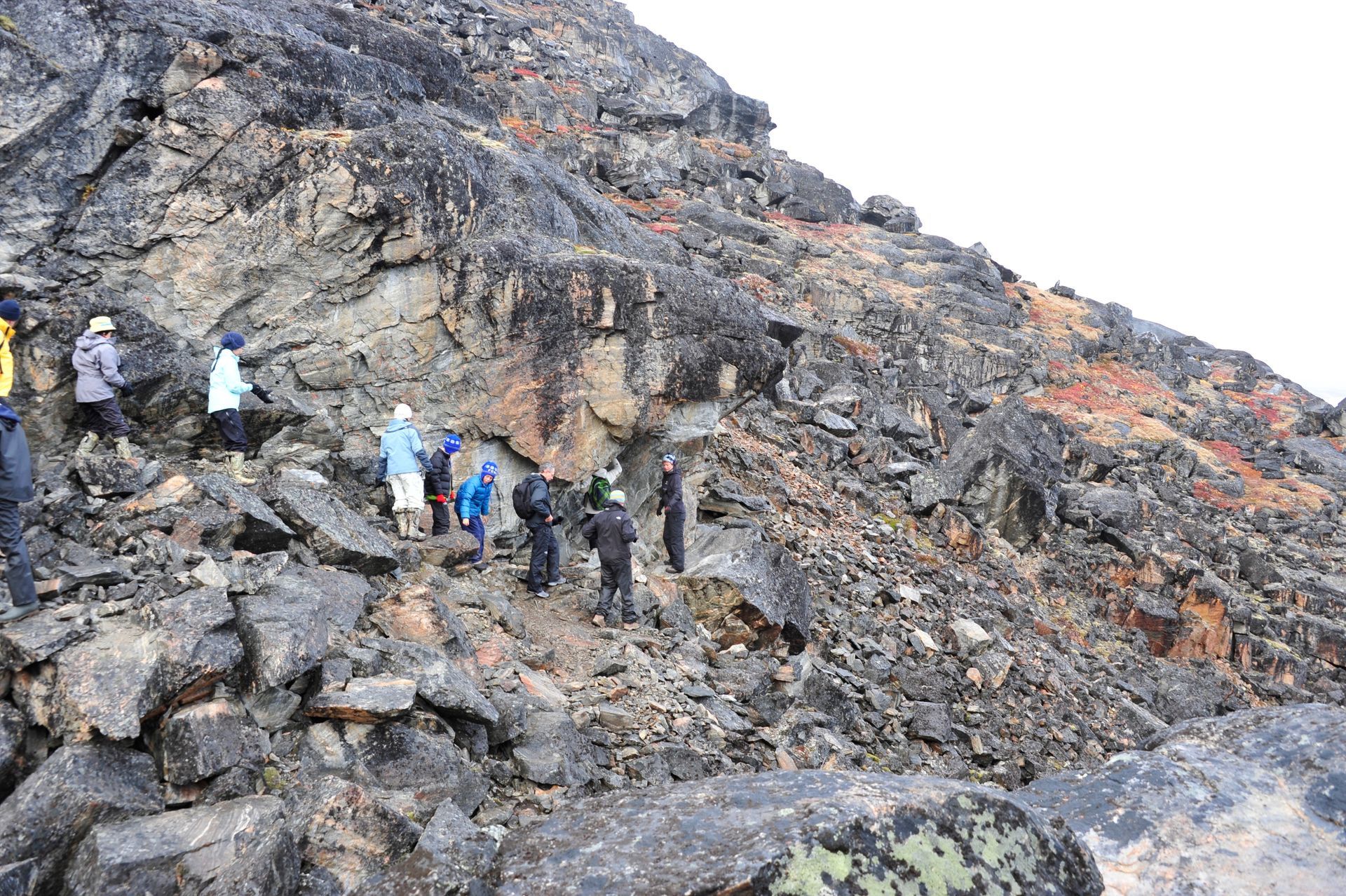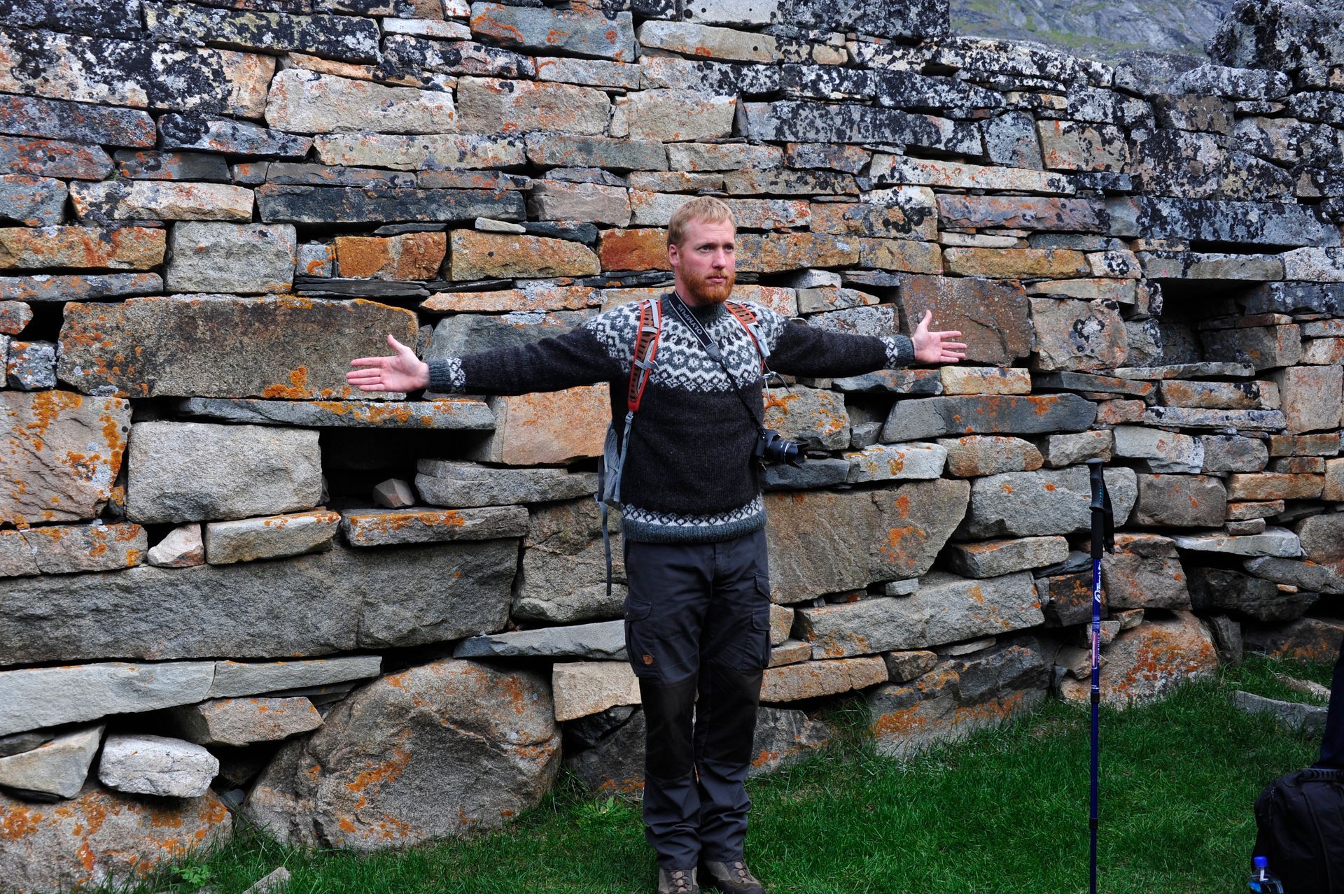 At Hvalsey, we explored the ruins of Hvalsey Church, built by Norse Settlers from Iceland who populated the area from 985 to 1410AD. Southern Greenland’s largest village, Qaqortoq, is populated with striking primary colored wood colonial buildings. While there, we toured the Great Greenland Furhouse and saw the stretched dried hides of the many types of seals that populate the area. They have a large export business and we saw literally thousands of dyed sealskins stacked and ready for shipment. Brattahild is the site of Erik the Red’s Farmstead. It is here that in the years 1961-64 archaeologists uncovered the remains of a small Christian church, dated to 1000 AD, believed to be Erik’s wife, Tjoldhilde’s, Church. She and her son, Lief had converted to Christianity, but Erik the Red never relinquished the Norse Gods, who had accompanied him safely to this new land. At the very tiptop of a rather steep and rocky hill on Sydday Island stands a lighthouse; and, Len, Dennis and Pat can proudly say they were among the hardy (or foolhardy) few who made their way to the pinnacle. Someone had to stay below to capture the feat on film, so Graci and I volunteered : )