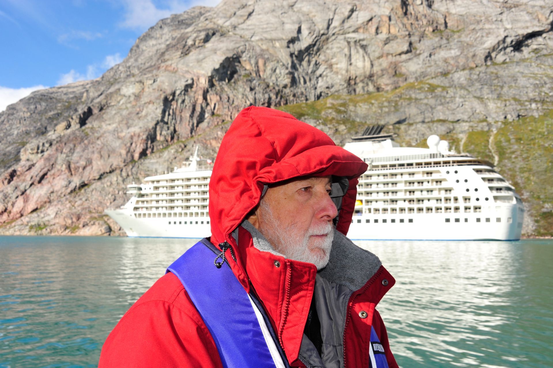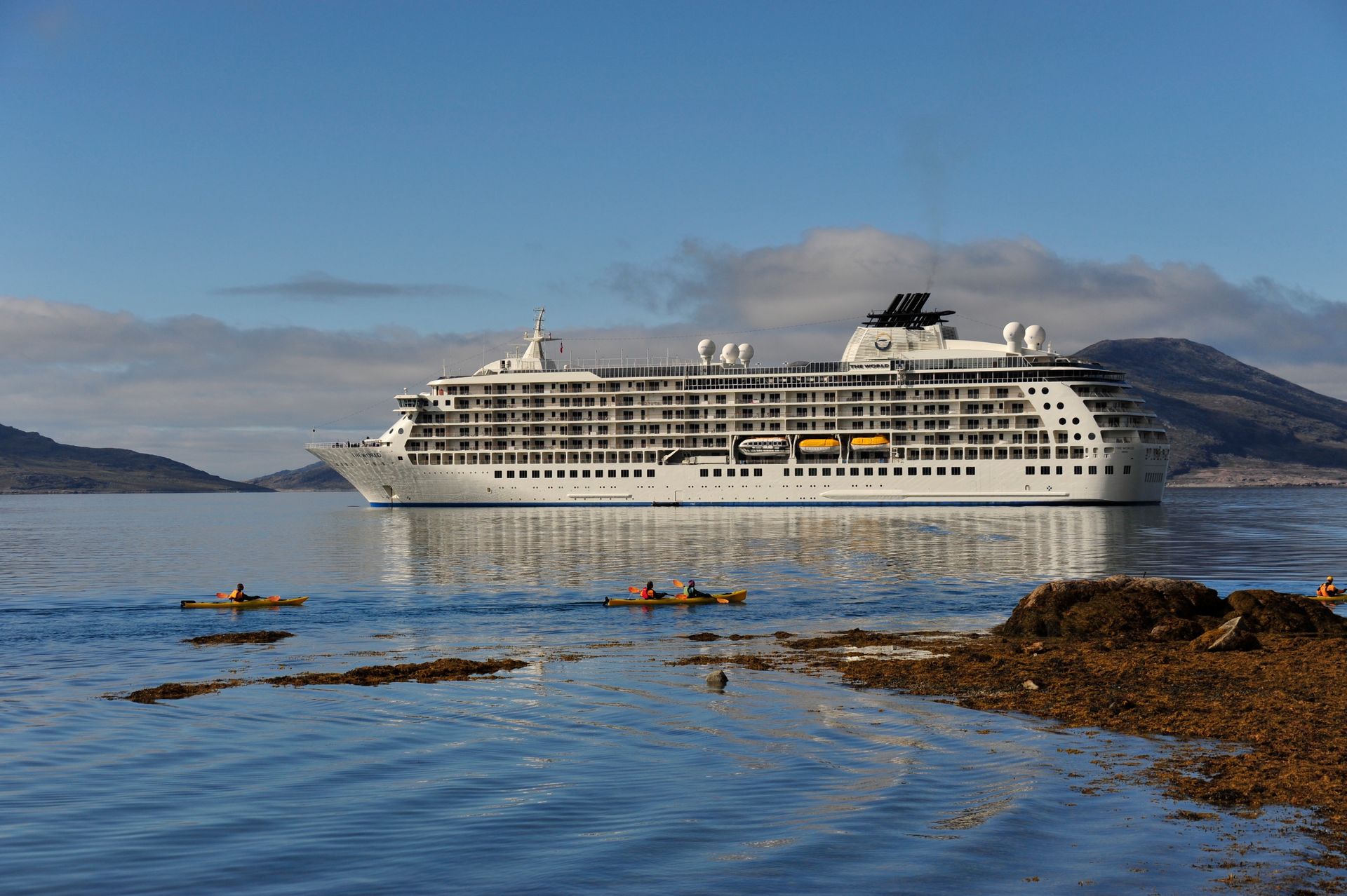 Although it is a part of Denmark, Greenland has moved steadily towards home rule since 1979. Greenland is a country on the cusp of global warming. In the near future during the brief summer season, there will be an opening in its northern icecap that will give rise to new life forms and new opportunities for industry, growth and change. This opening will freeze over again during the Arctic wintertime. The Greenland Institute of Natural Resources is a research institute working towards a scientific basis for a sustainable exploitation of the natural resources as well as for protecting the environment and the biological diversity in and around Greenland. We were very fortunate to have Peter Schmidt Mikkelsen, Deputy Head of this Institute to serve as one of our expedition leaders. Our expedition team was, as always, top-notch. Expedition Leader & Naturalist, Tim Soper along with Assistant Leader & Naturalist, Rob McCallum, have led The World ship to numerous corners of our planet, including the Arctic and the Antarctic. With a team of experts that included a Geologist; an Archaeologist; three Greenland Specialists; and five General Naturalists - no query went unrequited.