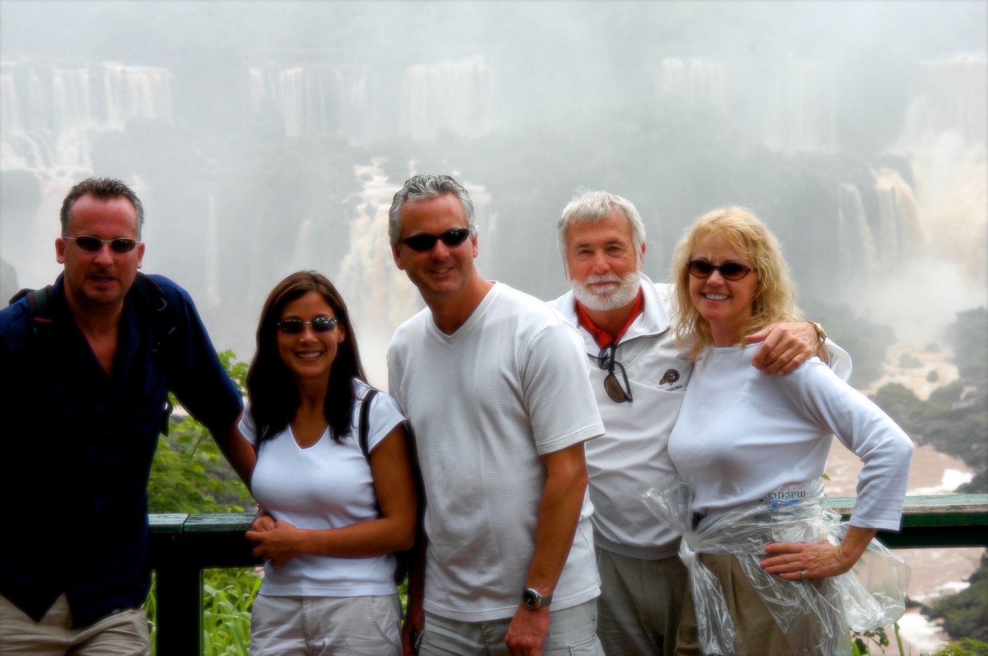 We were delighted to have the company of Len’s two sons, Dave, and Scott along with his wife Maureen, on this trip to South America. As we drove into Rio we began humming “Girl From Ipanema” since that famous beach was on our itinerary as was the equally famous Copacabana! The sun was hot, the air moist and the miles of epic beach were accented with mosaic sidewalks decorated with a black and cream swirl pattern that seemed to match the mood of the song. We hopped into helicopters in order to get the best view of some of the other famous landmarks - the giant statue of Christ the Redeemer atop Corcovado mountain; Sugarloaf mountain; the giant permanent parade stand used for Carnival and Maracana stadium, one of the world’s largest. Another airplane ride and we arrived at the border of Argentina and Brazil to view one of the most spectacular water falls in the world - Iguacu Falls where we raced in and out of the spectacular falls in a boat meant for speed - staying dry was not an option - 450,000 cubic feet of water per second crashes down in a deafening roar. In Montevideo, Uruguay we spent a fun-filled day at a beautiful Estancia (Ranch) where the gauchos invited us to try our hand at riding horses, sheering sheep, milking cows, and then we were treated to some of the best barbecue any of us had ever tasted.
